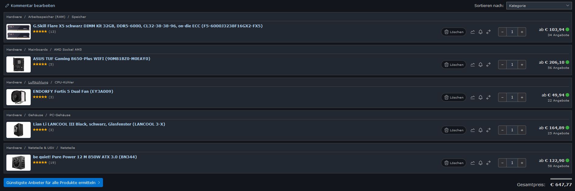 Der PC muss nicht unbedingt leise sein, er steht unten abseits eines Tisches. Optik ist somit auch unwichtig, RGB auf keinen Fall würde ich sowieso abdrehen. Der PC braucht keinen Schönheitspreisgewinnen, auch Glasfenster etc. sind überflüssig.