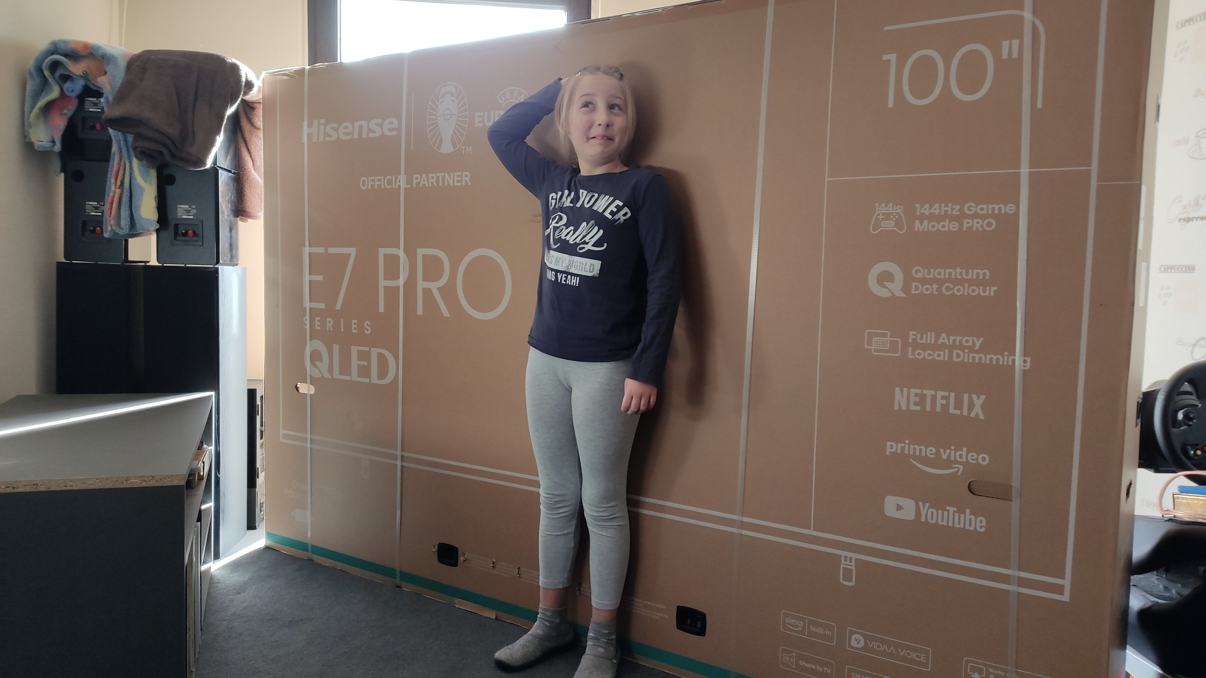 seit heute bin offiziell auch ich in Verbindung mit meinem Heimkino im 4K UHD-Zeitalter angekommen. Ein riesiger Trümmer von TV in Form des Hisense 100E77NQ Pro steht (noch eingepackt) im Heimkino und wartet nun darauf, in Betrieb genommen zu werden.