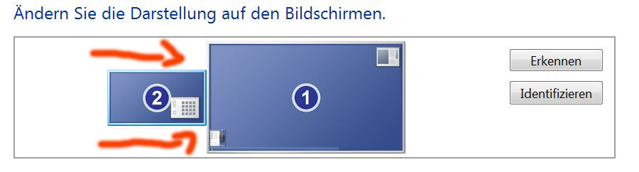 Nun wenn ich meinen Full HD daneben schalte, ist diese Anzeige-Skalierung natürlich viel zu hoch, zudem gibt es diese störenden Übergangskanten (Siehe Bild rote Pfeile).
