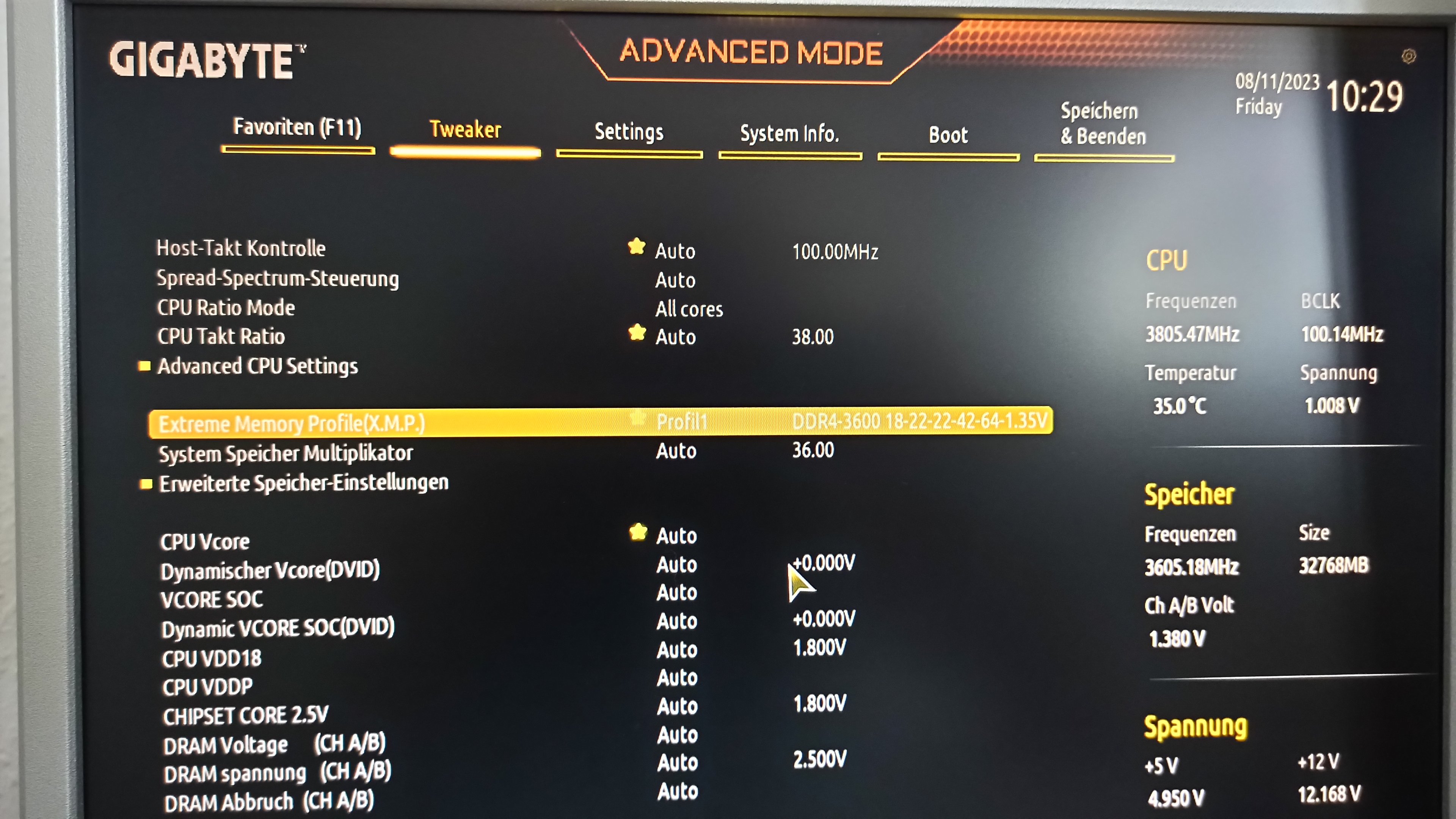 So seiht das bei mir aus, diese Werte muss man für seine CPU selber auloten also nicht einfach übernehmen!