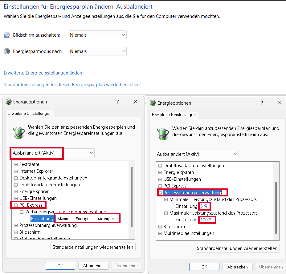 ASPM ist für die Energieeinsparung zuständig, aber bevor man diese Einstellung setzt sollte man vorher eine Einstellung unter den Energieoptionen in Windows einstellen: