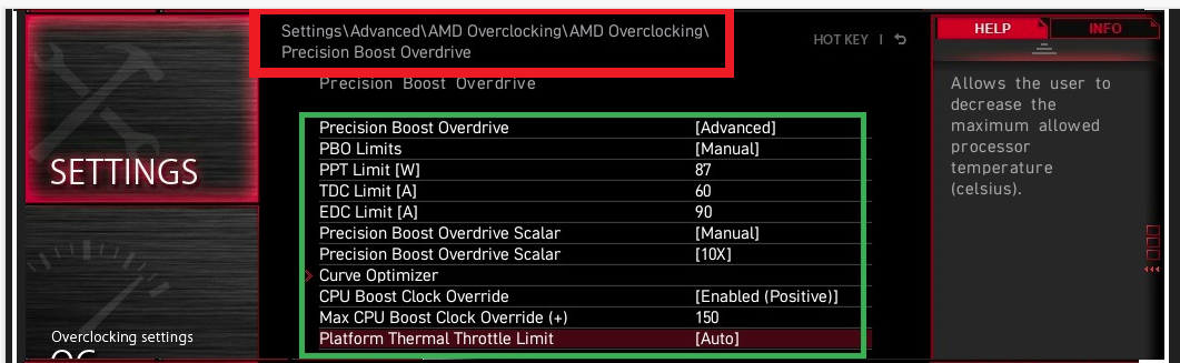 Diese Einstellung ist sehr von der Gote der CPU abhängig, damit kann man festlegen wie lange die CPU den boost Takt halten soll.