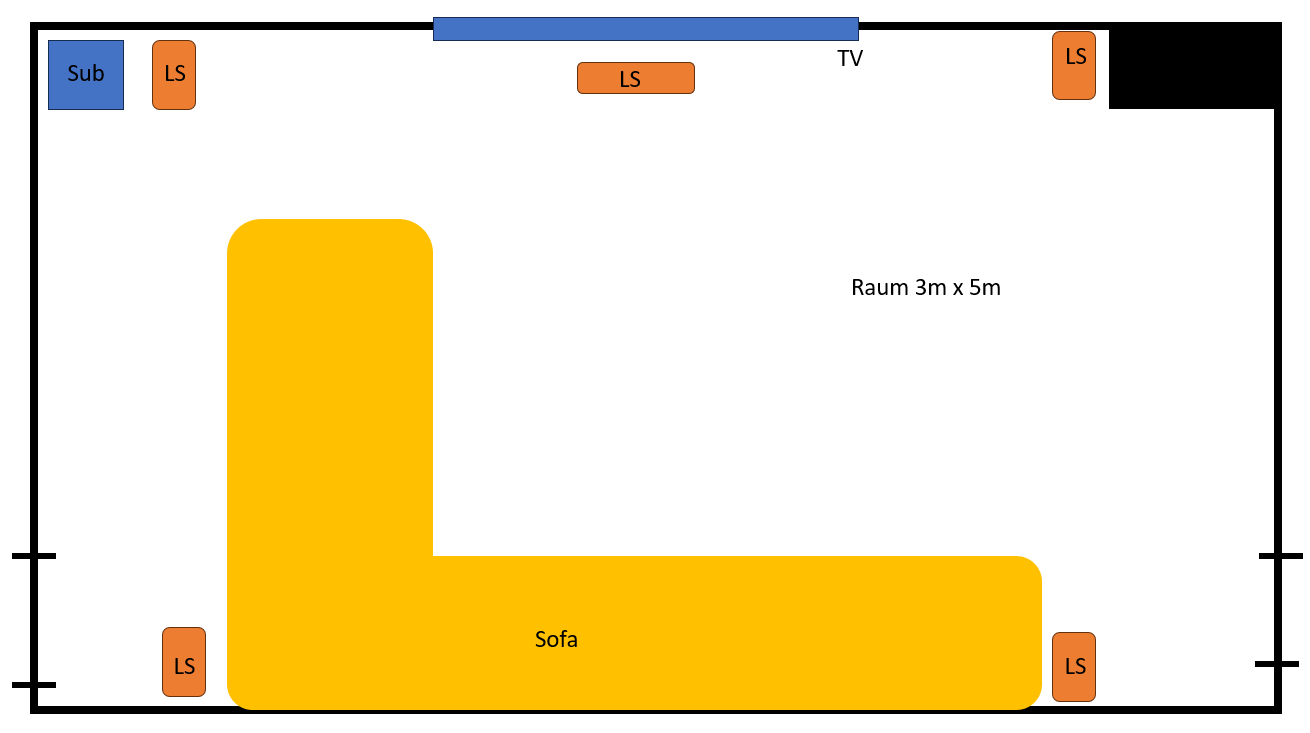 Meine Auflagen waren eine Soundbar. Ich konnte aktuell etwas optimieren und es kann eine Soundbar mit Subwoofer und 2 Rear-LS sein.