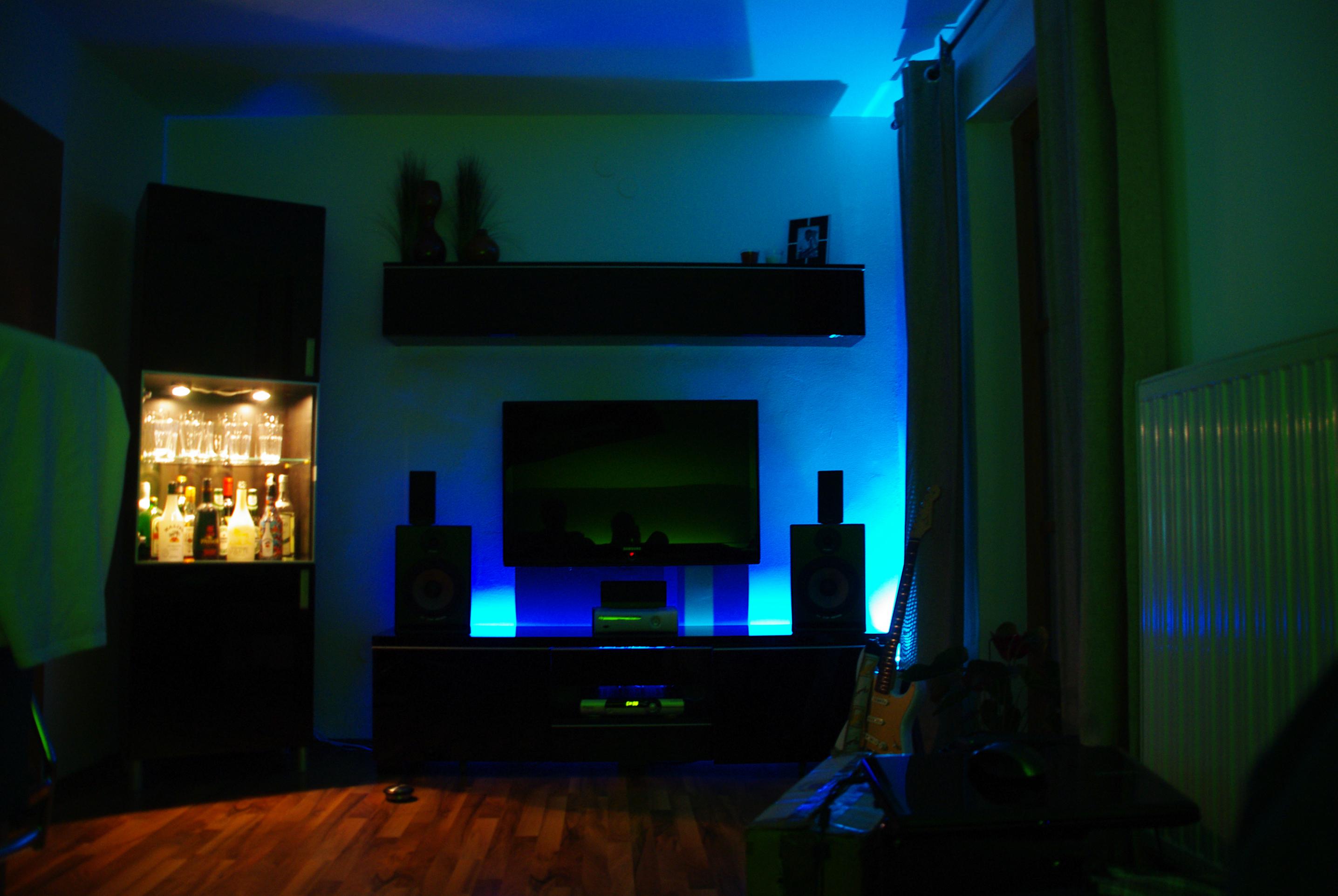 Anbei poste ich mal den Blick in Richtung TV, wenn man auf der Couch sitzt.