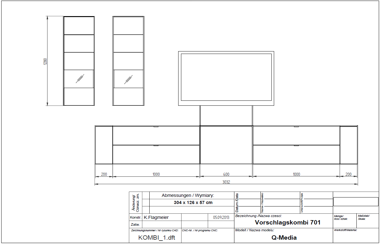 ich bin stolzer besitzer eines TV-Möbels Q-Media von Musterring. Leider bin ich dadurch an gewisse Baugrößen beschränkt. Der Subwoofer und der Center vesteckt sich hinter dem schwarzen Netz in der Mitte, die beiden Boxen jeweils außen. (siehe Bild und Prospekt)