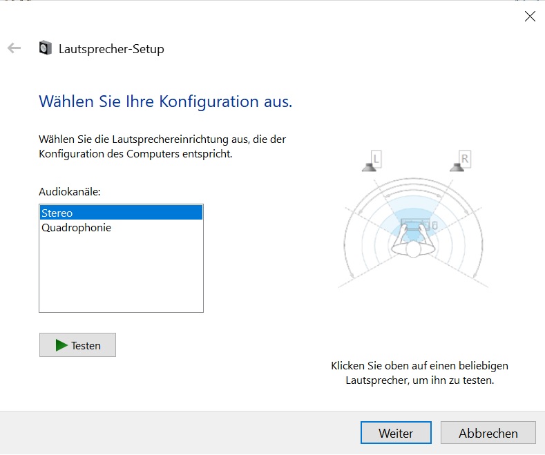 Zur gleichen Zeit war und ist es auch nicht mehr möglich in der Konfiguration die 5.1 Option auszuwählen. Es stehen nur Stereo und Quadrophonie zur Verfügung. Bei Quad auch nur die vorderen zwei Außenlautsprecher am döngeln.