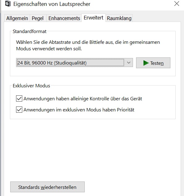Ich habe meinen Teufel 5.1 Decoder an den PC (Win 10, 64bit) angeschlossen, undzwar über 3x Klinke zu Cinch Kabel. Das alles hat schon desöfteren funktioniert. Allerdings weiß ich nie genau wie, weil ich mich jedes Mal stundenlang durch sämtliche Konfigurationen schlage, hier was probiere, dort was probiere (eben auch aus nebenbei recherchierten Foren) und irgendwann klappt es dann. Heute leider nicht...