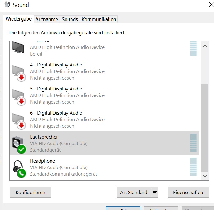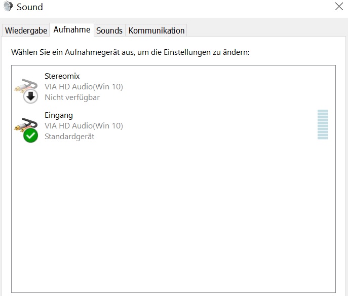 Nun habe ich diverse Male die Treiber deinstalliert und automatisch neu installieren lassen - das brachte allerdings gar nichts. Zwischendurch noch im Reiter "Aufnahme" die Geräte in verschiedenen Konfigurationen getestet. Nichts.
