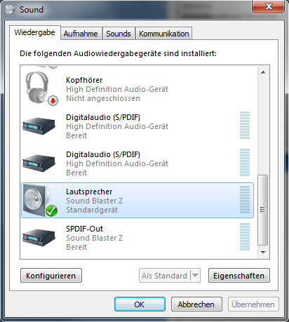 Bei den Windows-Sound Einstellungen wie auch bei der Soundkarten Systemsteuerung seh ich keine fehlerhaften Einstellungen.