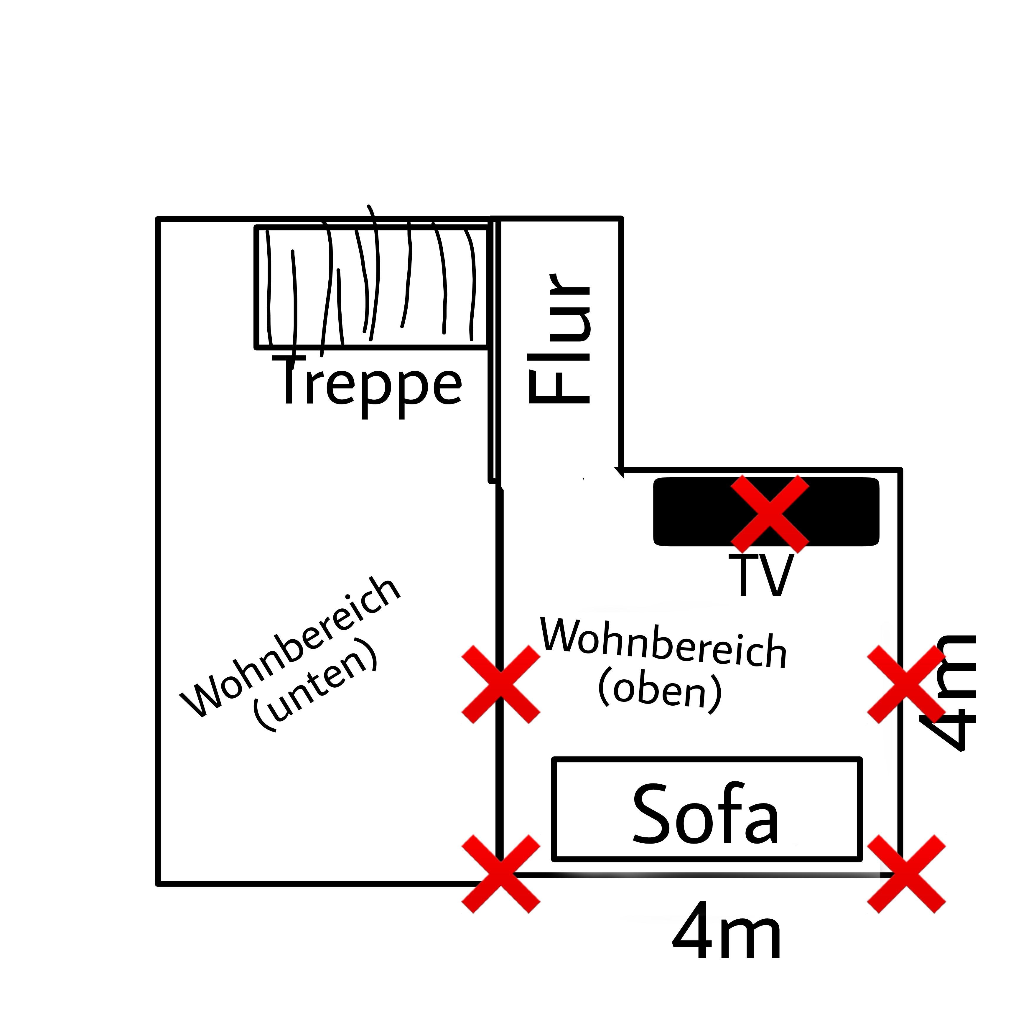 Die Wohnung selber ist jedoch nicht 0815. Der Fernseher mit Sofa befindet sich in einer Art Galerie, welche nach links offen in den unteren Wohnbereich ist. Ich hab mal versucht es mit einer Skizze und Fotos ein bisschen greifbarer zu machen.