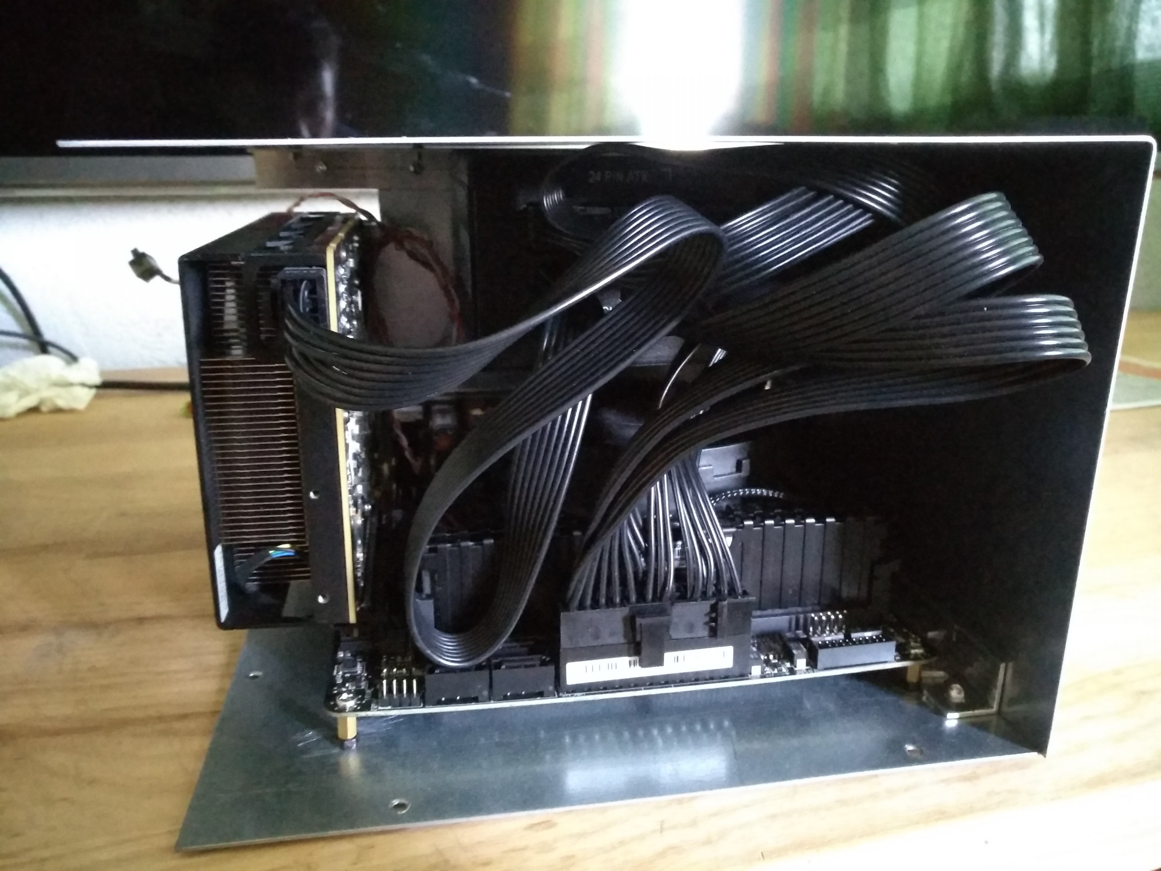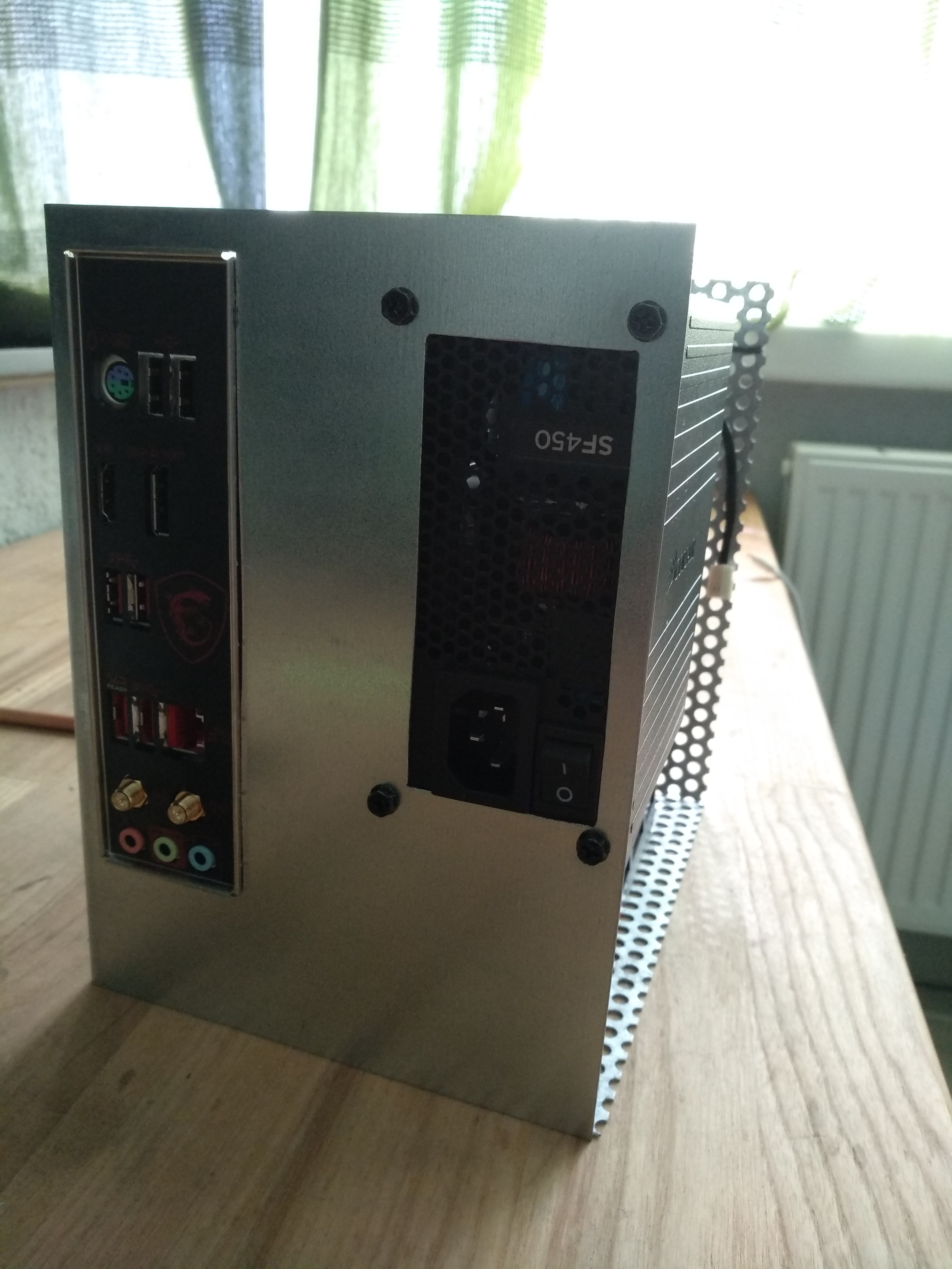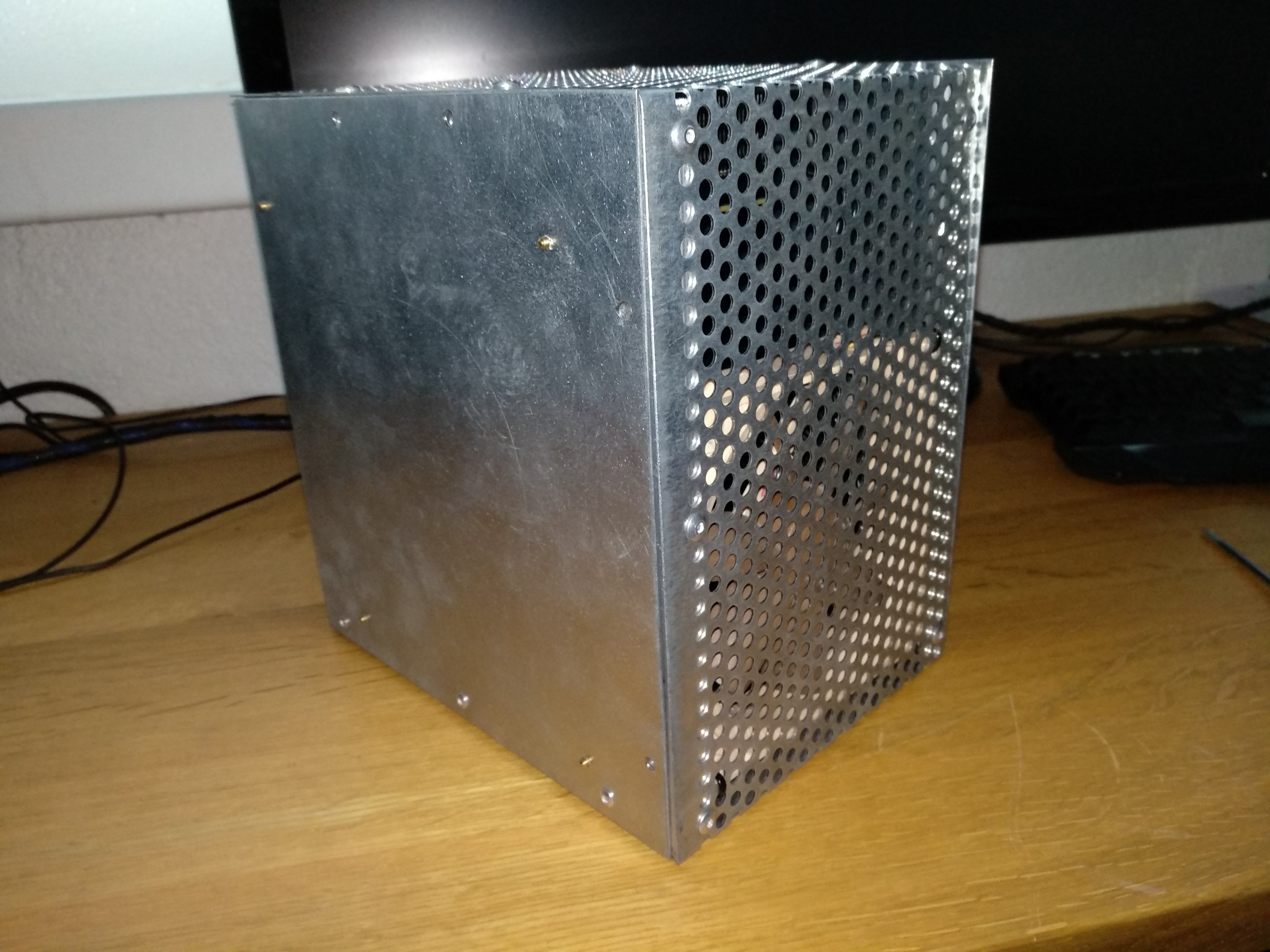 Zu sehen gibt es aber erstmal nur einen ersten Versuch mit den deutlich sinnvolleren Maßen von 150*200*210 mm. Hier sind Temperaturen absolut kein Problem und man hat etwas mehr Freiheit bei den Maßen der Grafikkarte. Reichlich kompakt aber warum auch immer soll es nochmal kleiner werden... ^^