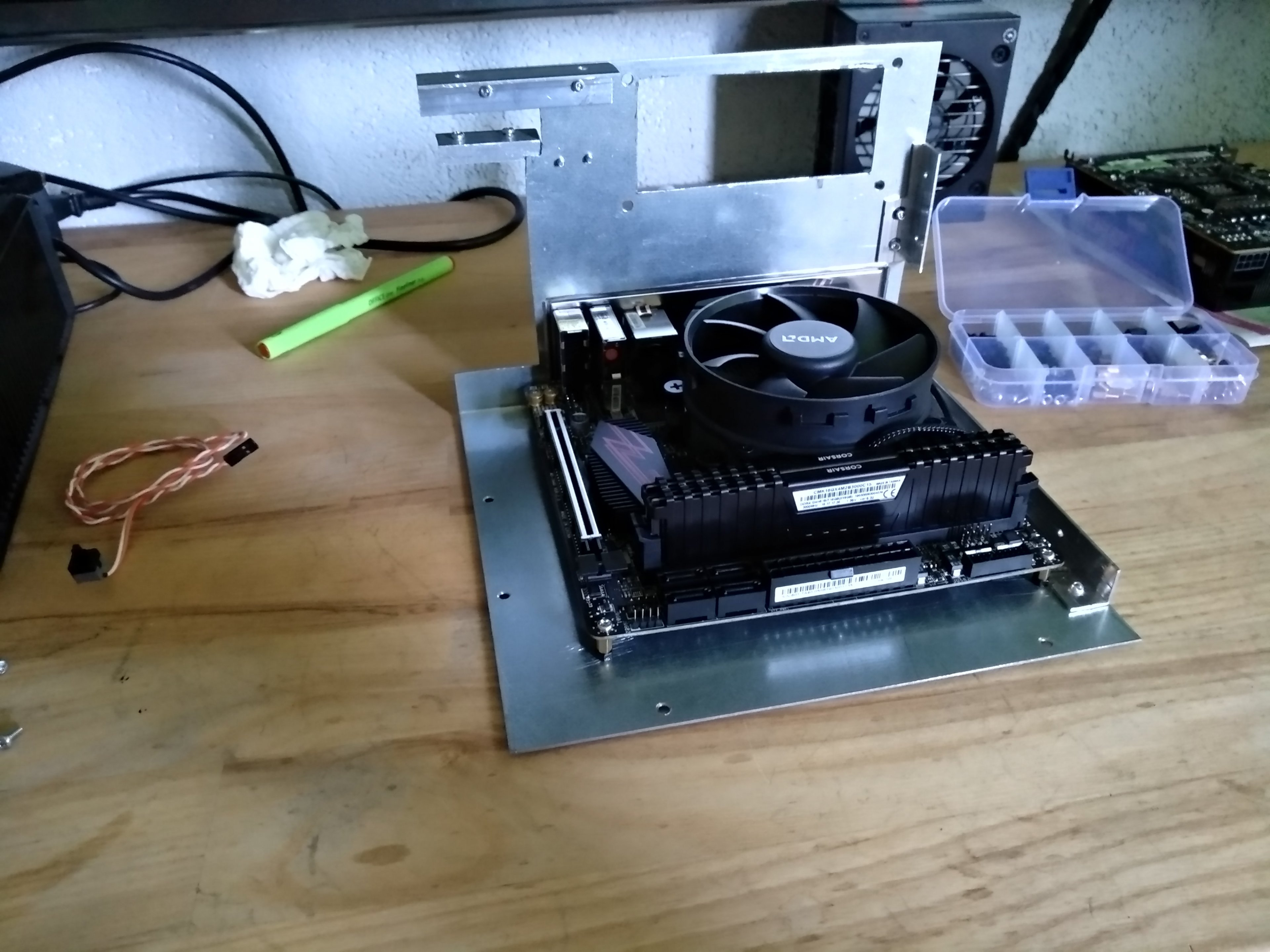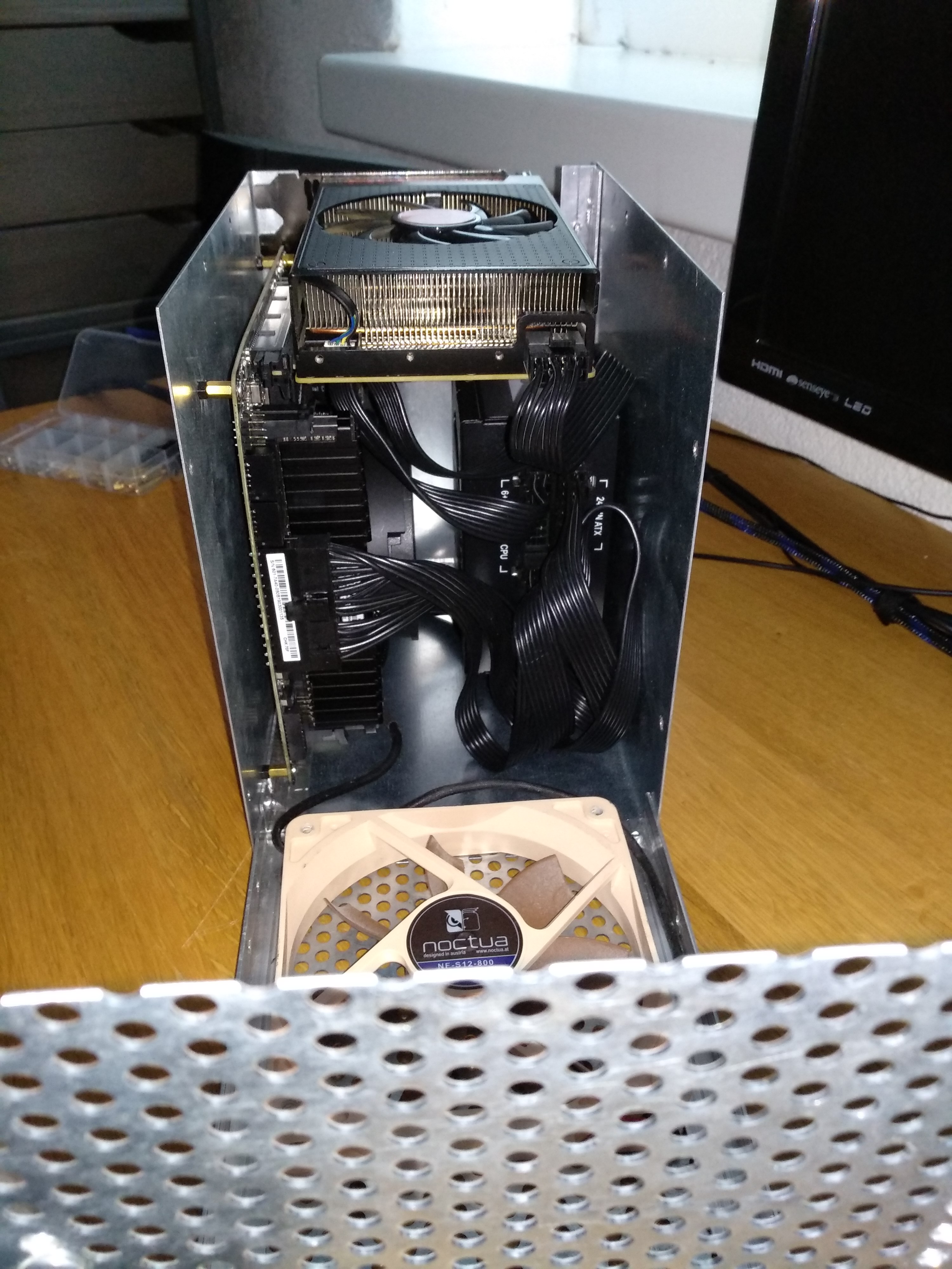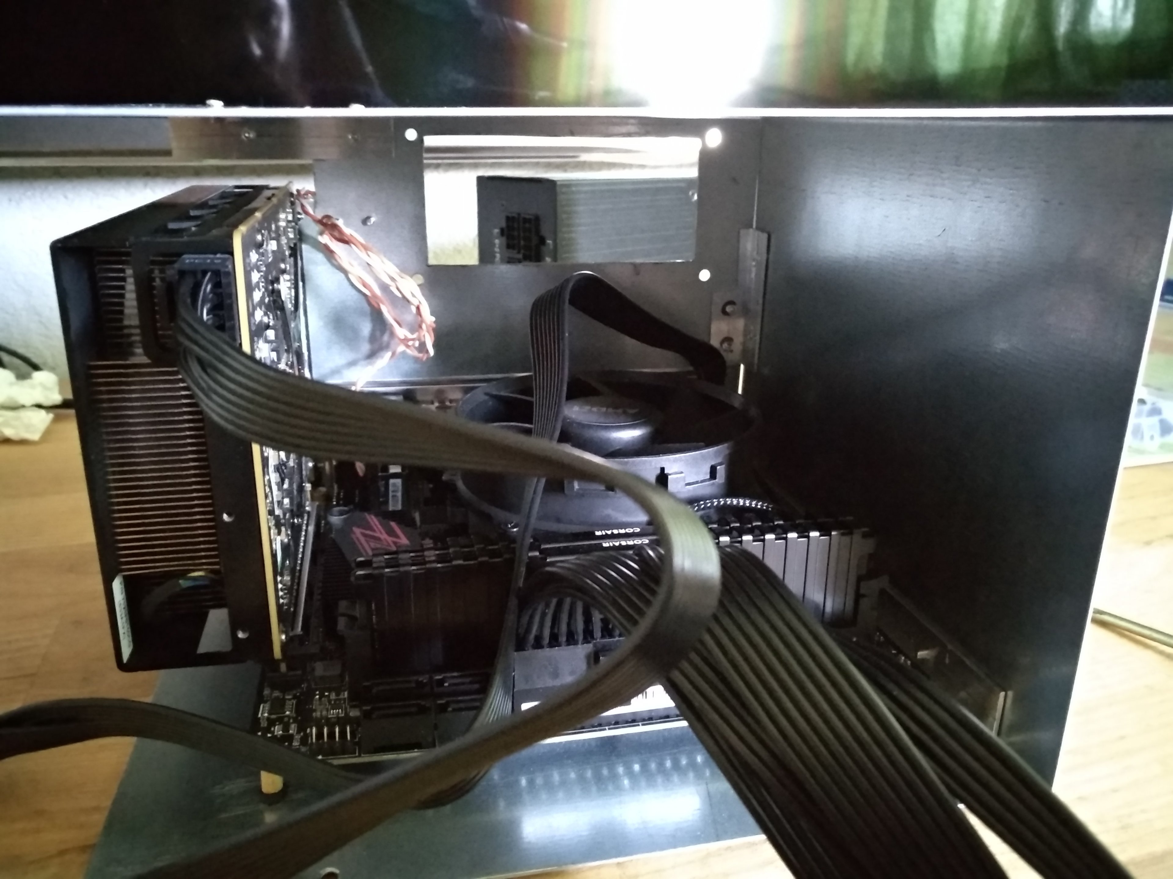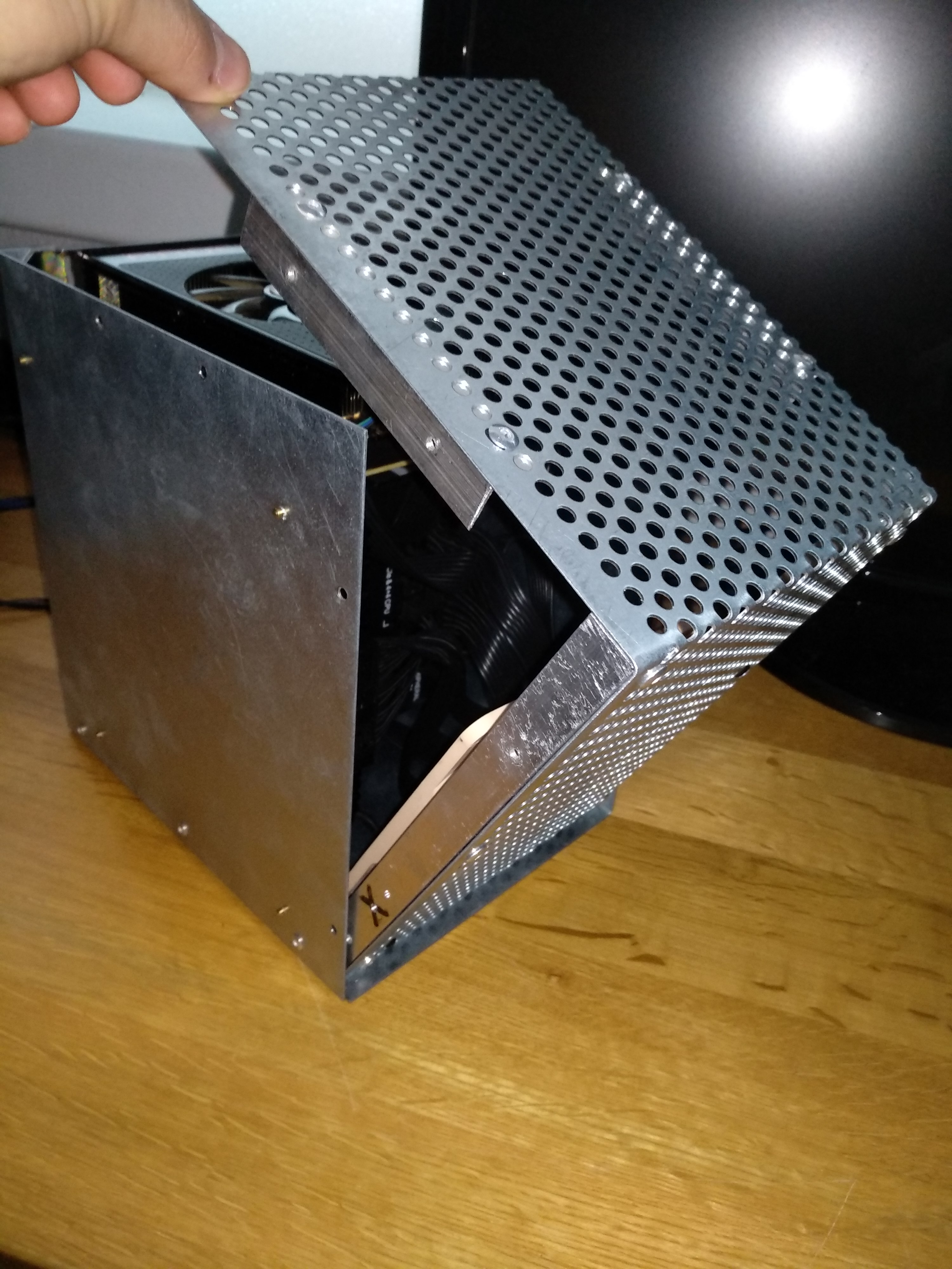 Zu sehen gibt es aber erstmal nur einen ersten Versuch mit den deutlich sinnvolleren Maßen von 150*200*210 mm. Hier sind Temperaturen absolut kein Problem und man hat etwas mehr Freiheit bei den Maßen der Grafikkarte. Reichlich kompakt aber warum auch immer soll es nochmal kleiner werden... ^^