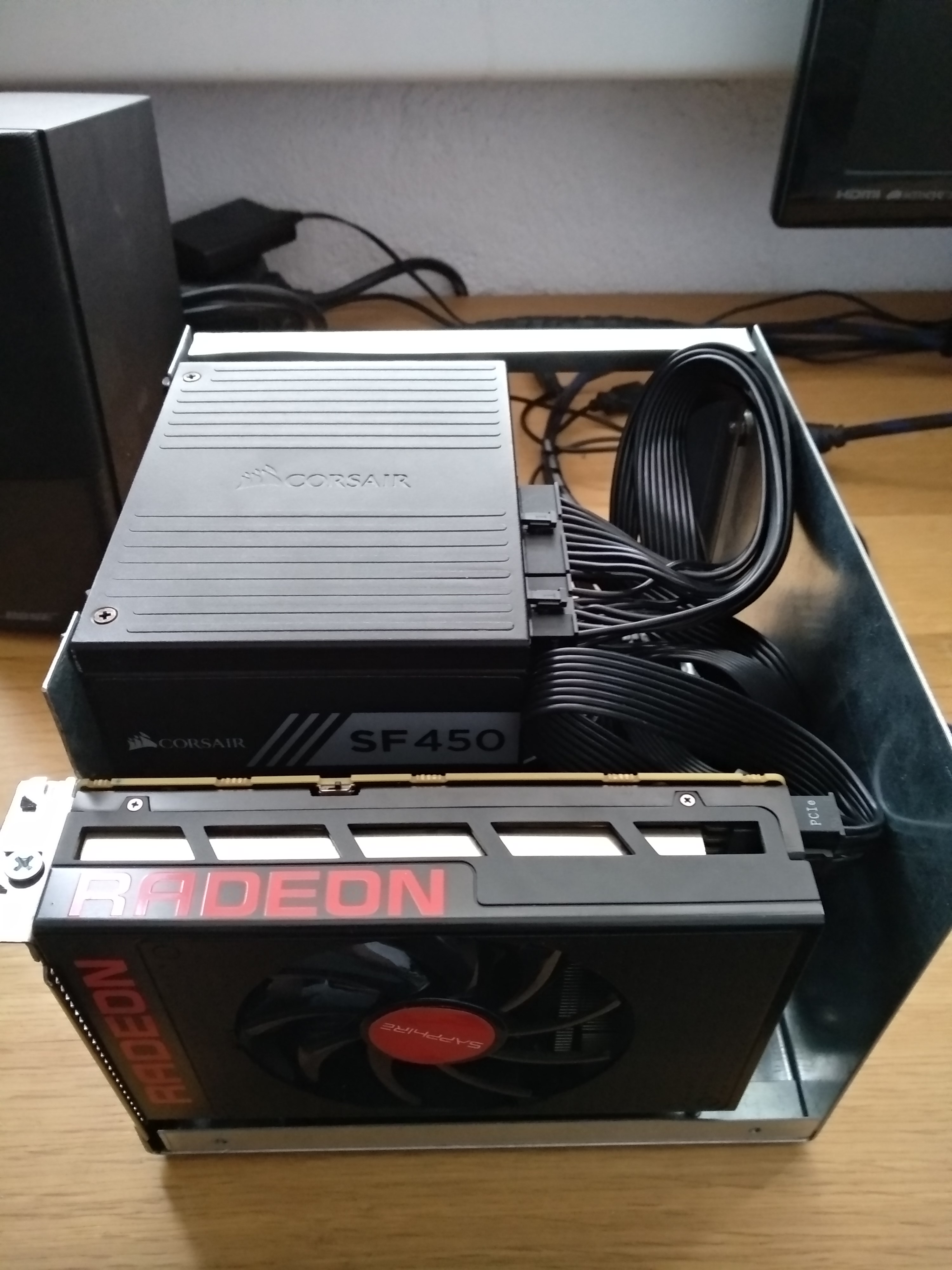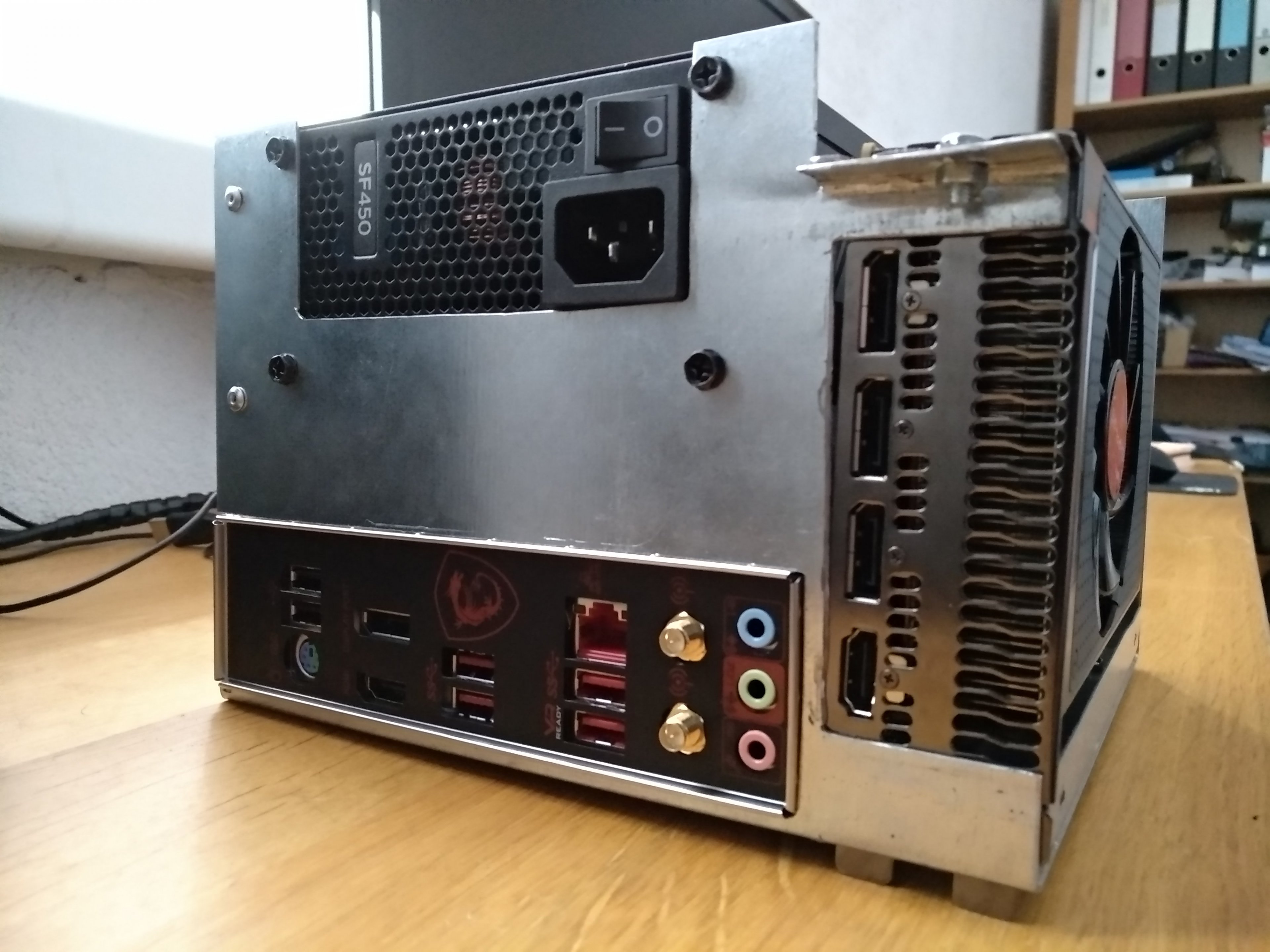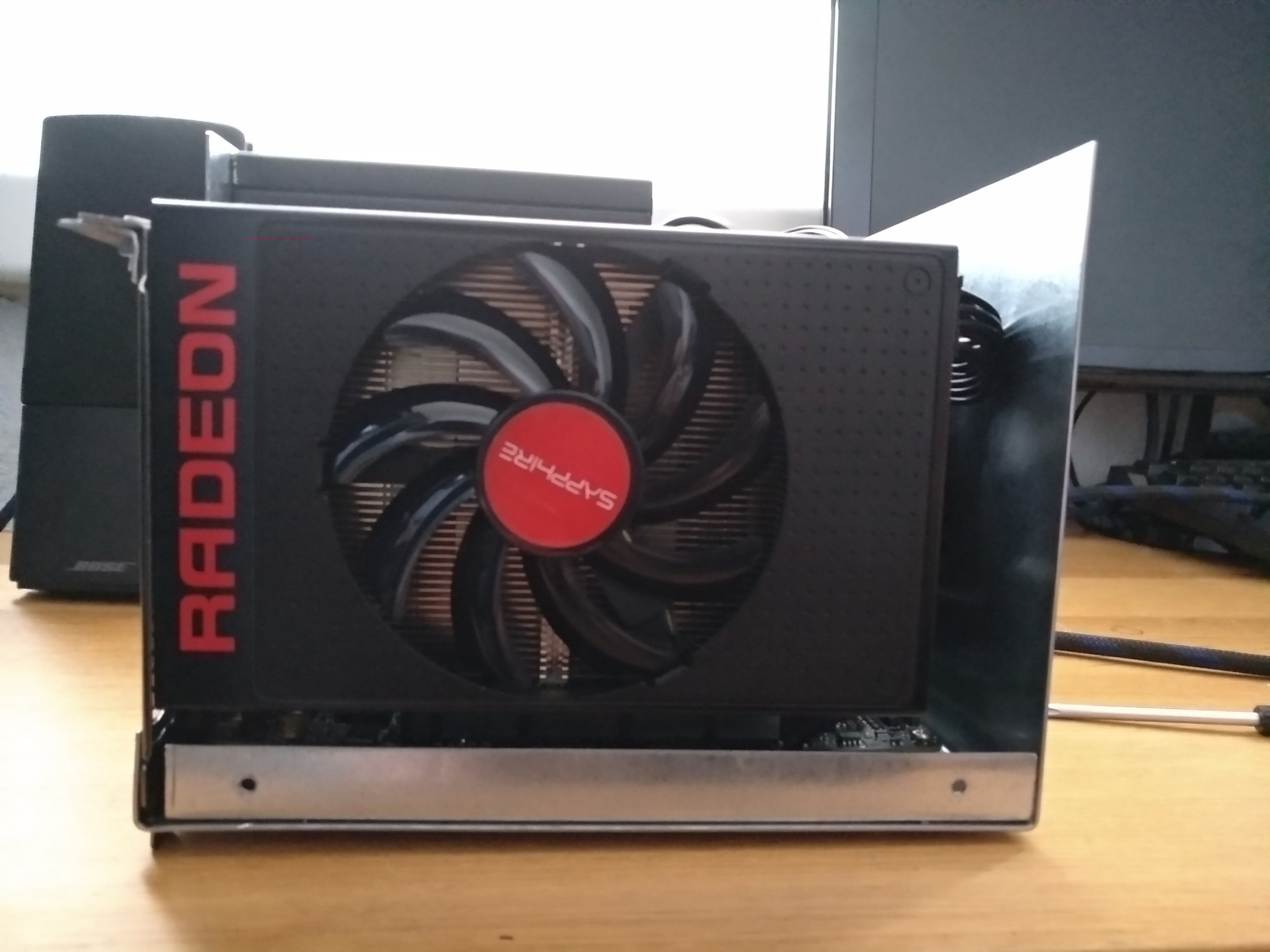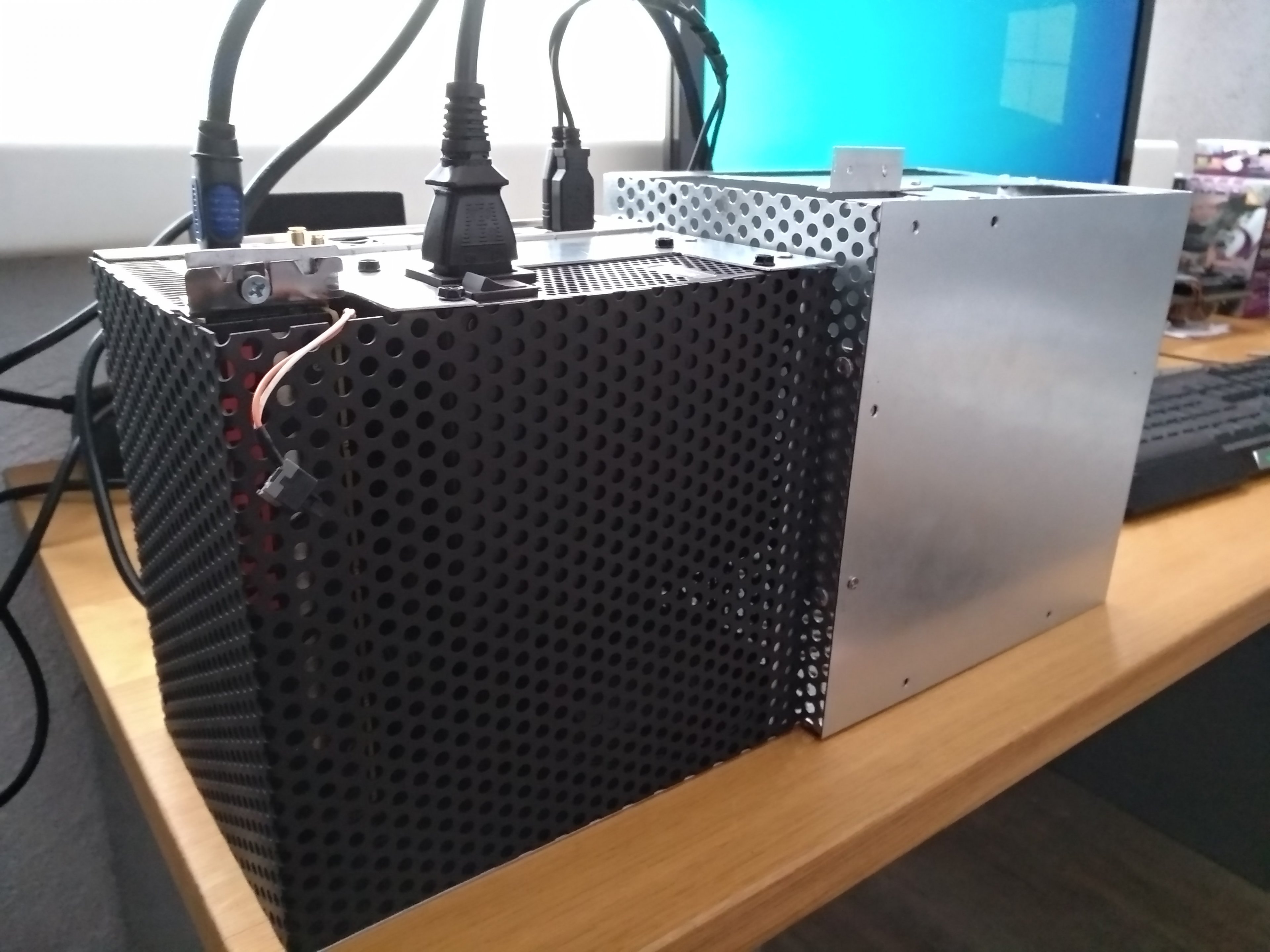 Alles kam in ein eigentlich gut belüftetes Silverstone SG05, weil ich mich erstmal vertaut machen wollte mit dem R5 3600 und seinem mitgelieferten Kühler. Im Spielbetrieb wurde das ganze dann überraschend laut. Und auch ohne Last wurde der Lüfter ständig geregelt, was nervte. Also im BIOS die Lüfterkurve angepasst: 20% (~950rpm) bis 70°C und dann auf 100°C/100%.