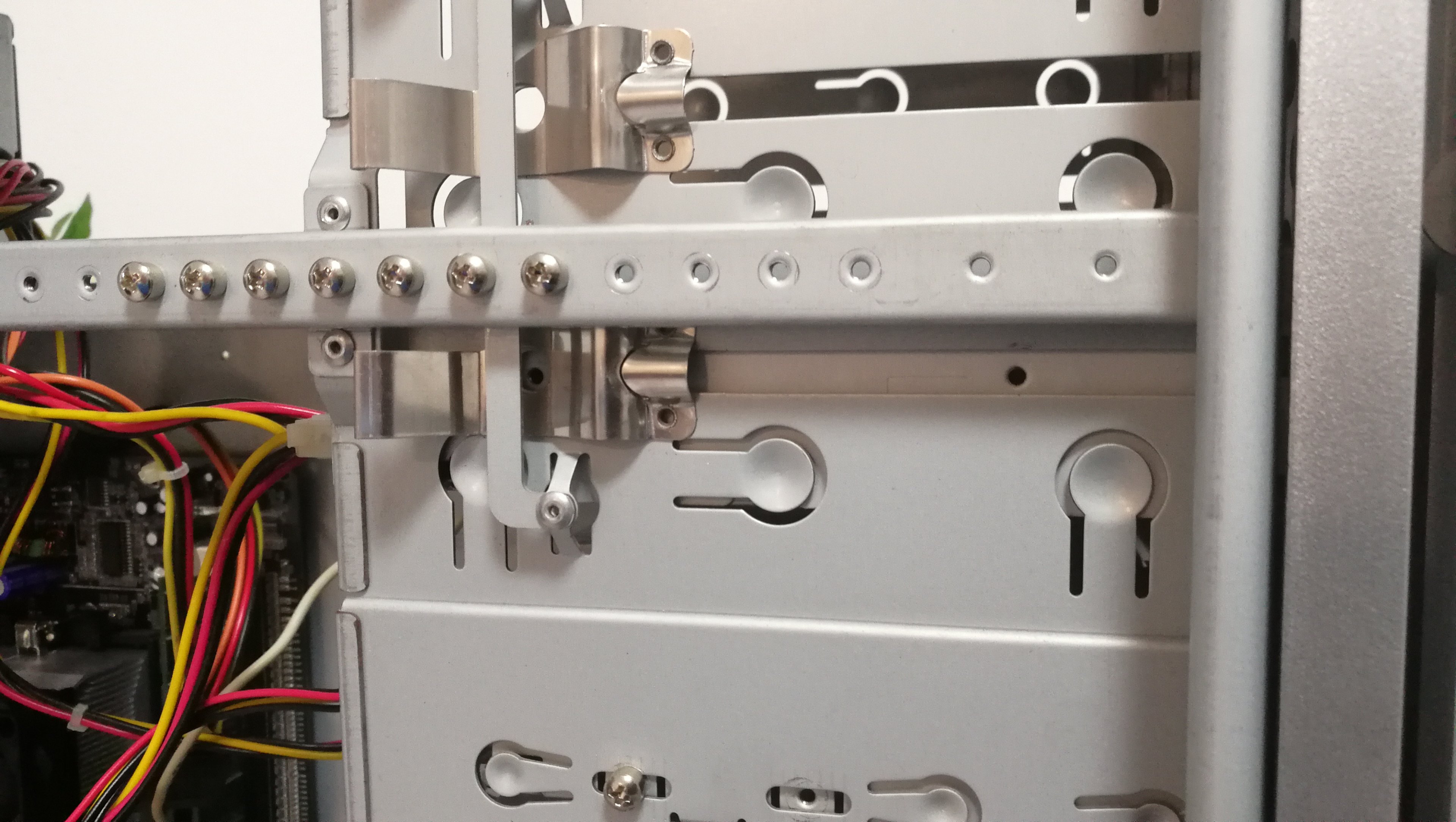 habe heute einen alten PC für Werkzwecke zusammengebaut und scheitere irgendwie an den 5,25" Schächten. Ich verstehe hier die Befestigung bei dem alten Chieftec Tower nicht. Siehe Bild beim DVD-Laufwerk, dort ist die vordere Verschraubung die einzig sichtbare und hier bräuchte ich Schrauben mit sehr großem Kopf oder Unterlegscheiben zur Fixierung weil die Öffnung so hoch ist, während die hintere Schraube durch diese blöde vertikale Strebe komplett verdeckt und unzugänglich ist. Die geht auch nicht ab weil verplompt. Ich verstehe auch nicht, was die ganzen Klemmnasen da sollen, keins meiner Laufwerke lässt sich damit vernünftig fixieren. Ich habe das Gehäuse gebraucht gekauft und irgendwie das Gefühl, als fehlt da was, oder ich bin zu blöd. Wer kann mir weiterhelfen?