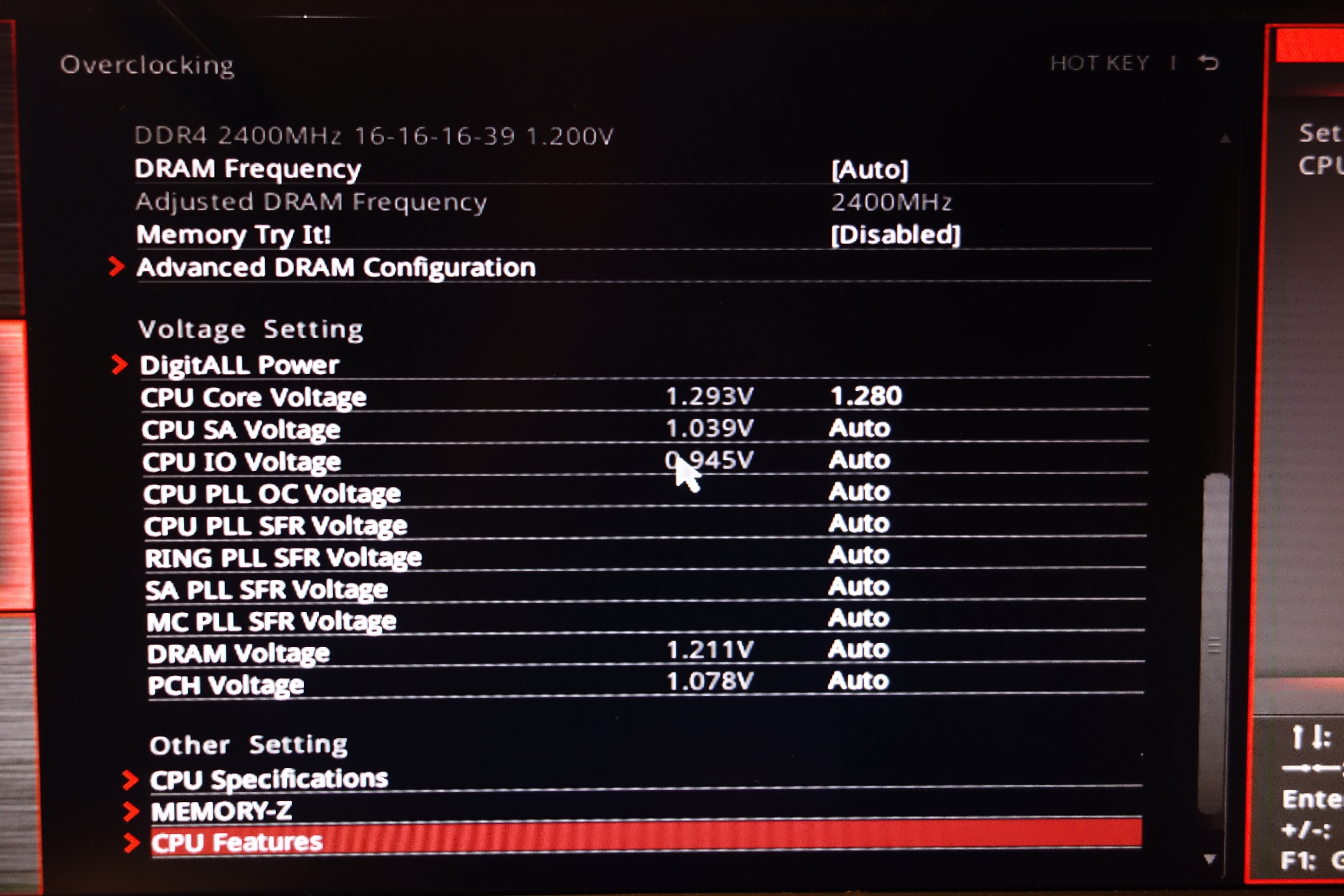 Ich habe erkannt, dass wenn man den 9900k maximal auf einen Ratio von 47 stellt, braucht man nur im 1,28 VCore Kernspannung (effektiv bei Last ca. 1,28-1,31V - Warum er bei höherer Last bei 1,31 V landet, obwohl ich 1,28 V eingestellt habe, ist natürlich etwas komisch, aber nun gut Nachtrag: Vielleicht an der Loadline-Calibration auf Auto) und kann dauerhaft auf allen Kernen mit 4700 ghz fahren und die Einstellung für die Taktreduzierung bei AVX-Anweisungen auf 0 lassen.