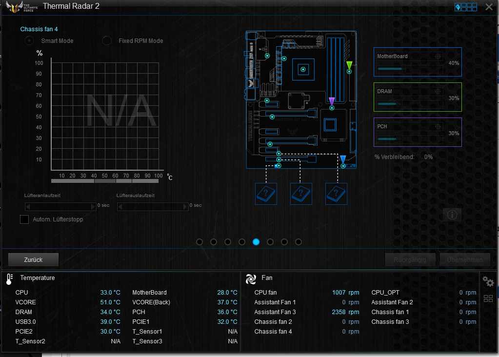 Lüfter ist am 4. Slot, aber nichts kann man einstellen. Im Bios hab ich auch schon alles möglich versucht, von PWM auf DC habe ich auch schon gestellt, da es ja kein PWM Lüfter ist. Aber das geht auch nicht.