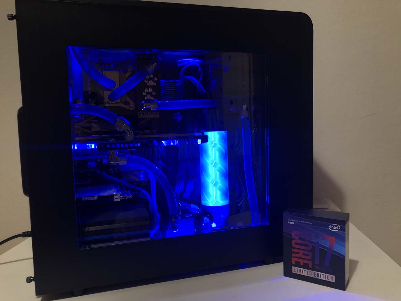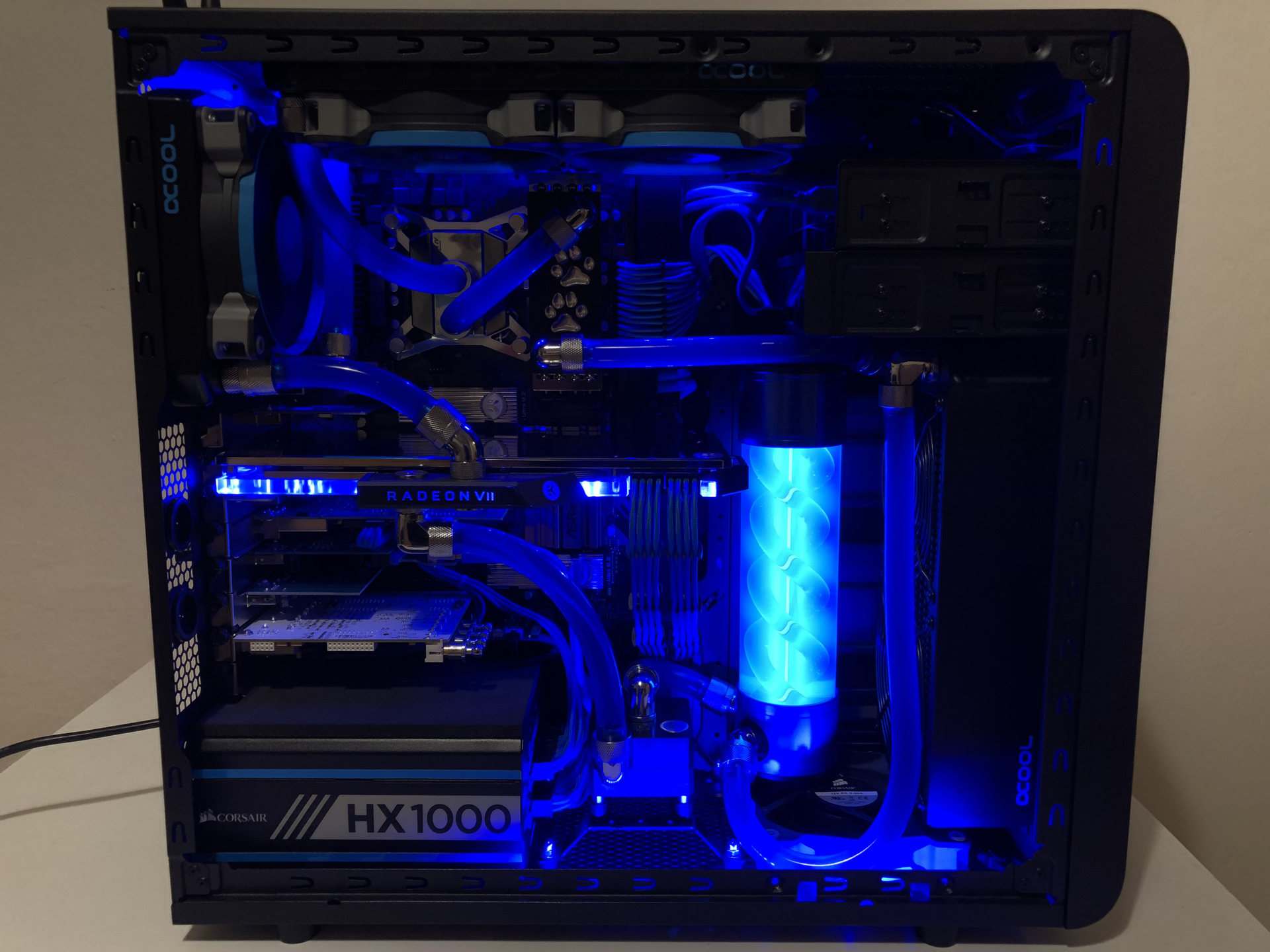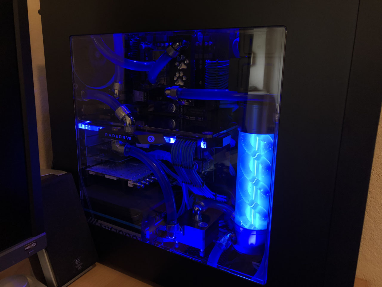 Danke für die Lorbeeren. Ist übrigens mein zweiter selbstgebauter wassergekühlter PC :-)
