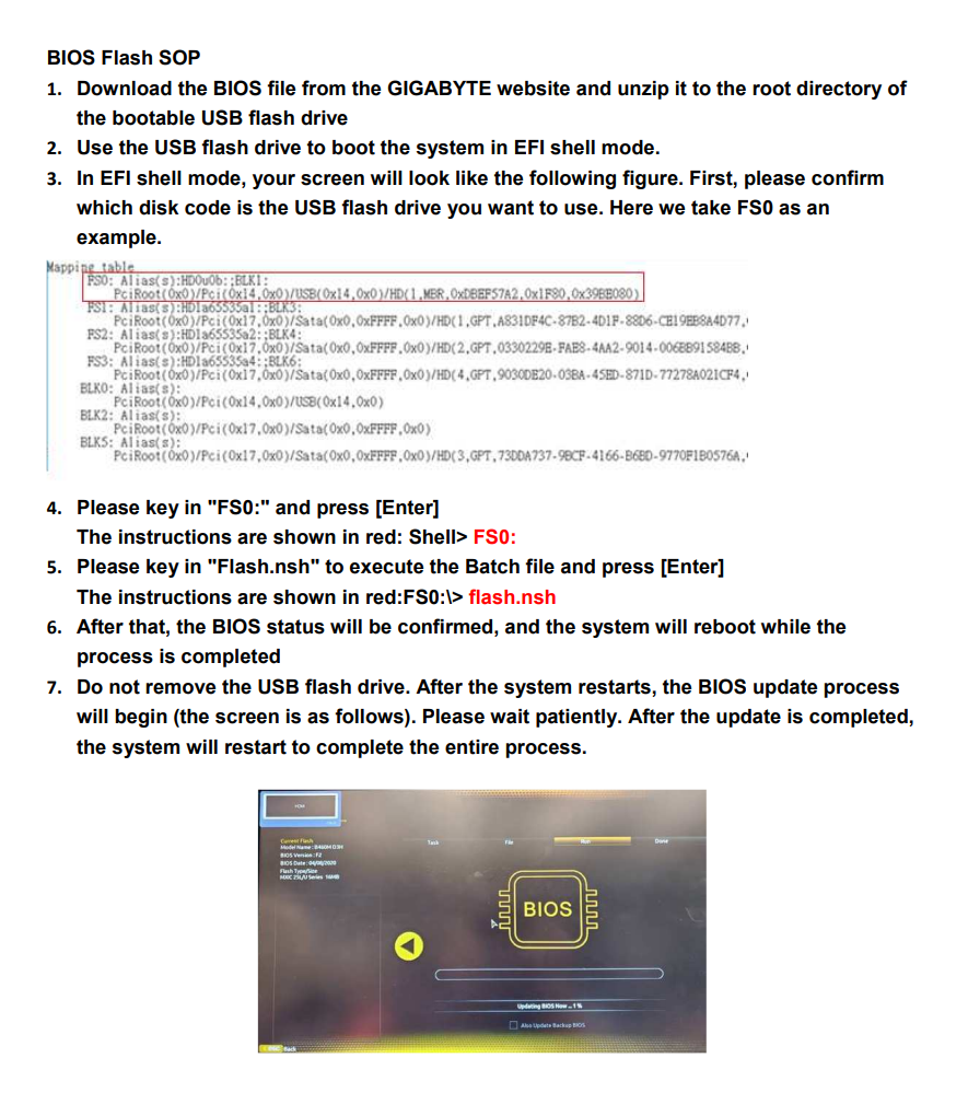 Die Anweisungen werden rot angezeigt: FS0:\> flash.nsh