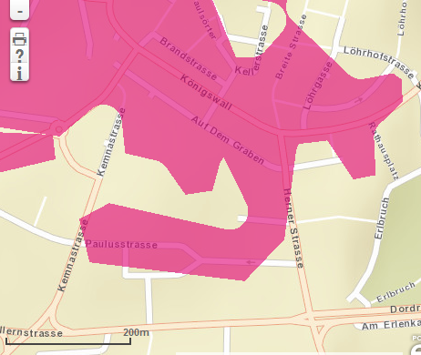 Da sind teilweise einzelne Straßen markiert und sogar Hausnummern ausgenommen. Maßstab sind unten 200m. Wenn aber (wie bei mir) schon bis zu 200m Fehlermarge drin sein können, kann man sich sowas auch klemmen.