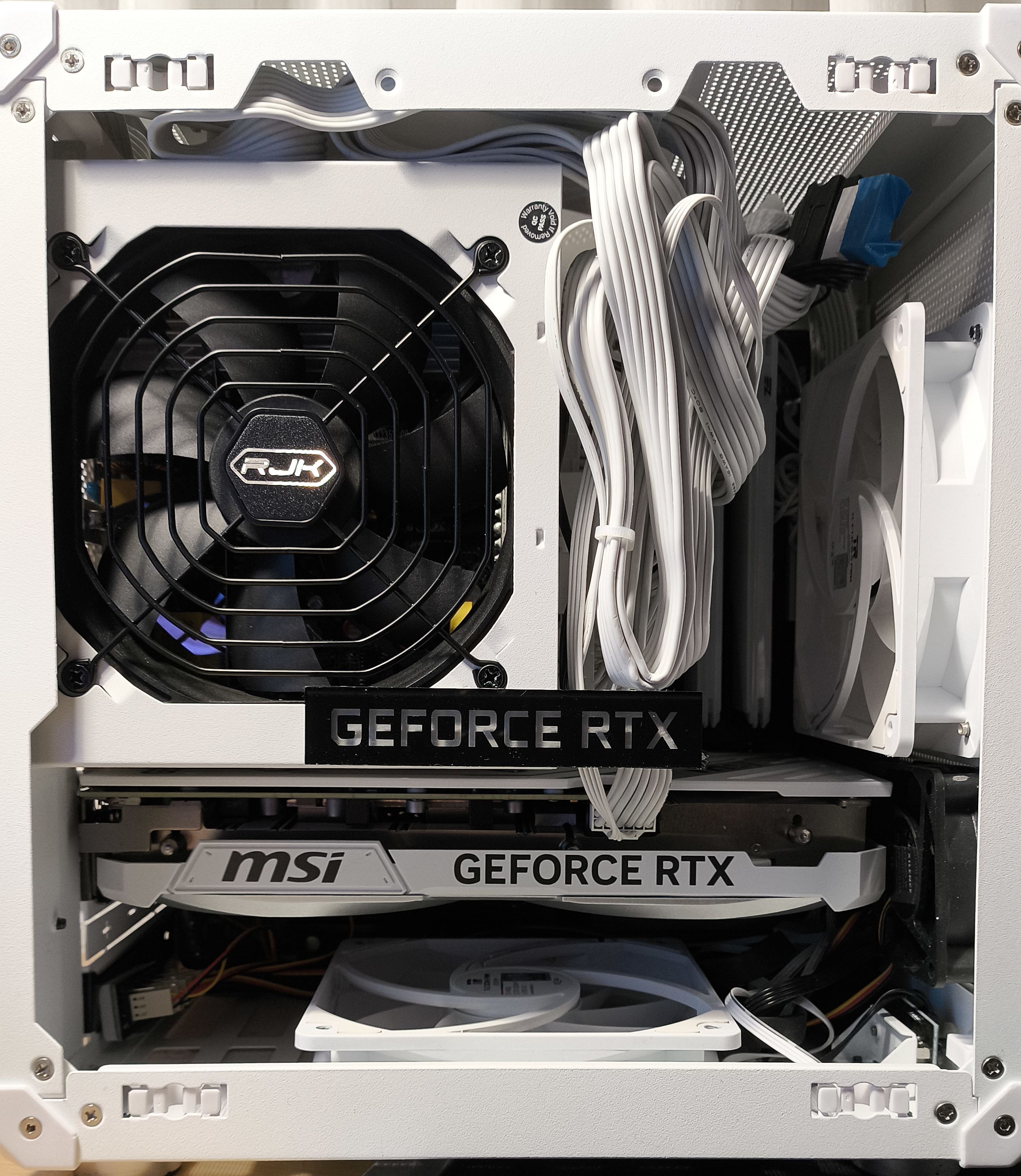 Der Kabelsatz ist übrigend komplett weiß, auch wenn die schwarzen Buchsen etwas anderes vermuten lassen. Keine Ahnung, war sie die Buchsen für die Modularstecker schwarz gemacht haben. Sogar den Schalter und die Kaltgerätebuchse haben sie in weiß verbaut.