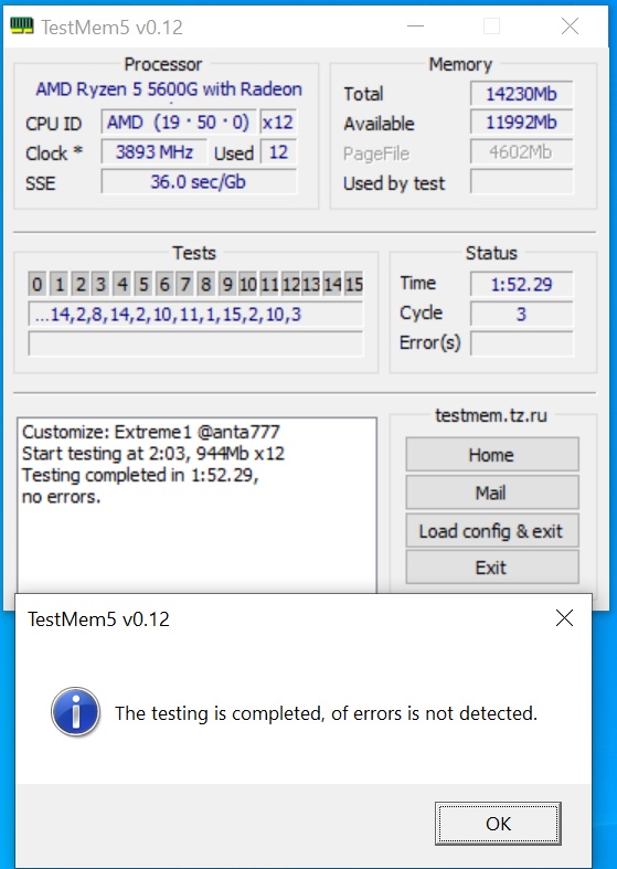 Dann habe ich mit den Taktungen des Arbeitsspeichers gespielt, jedoch war es egal ob der RAM auf 2133, 2666, 2933 oder 3200MHz (XMP, Standardkonfig) läuft und der Arbeitsspeicher durchlief auch den MemTest86 ohne Fehler (3200Mhz XMP).