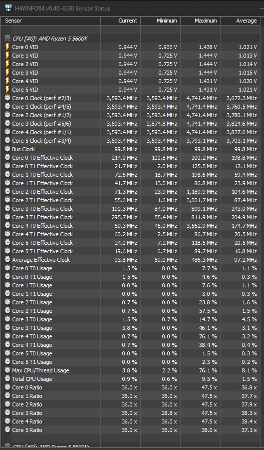 Windows, HWinfo, CPU-Z und die Cam Software von der NZXT AIO zeigen permanent einen Basistakt von 3600Mhz (ab und zu auch mal den Bootstakt) aber nichts drunter. Der Ryzenmaster zeigt als einziges auch bzw öfters den Idle Takt an.