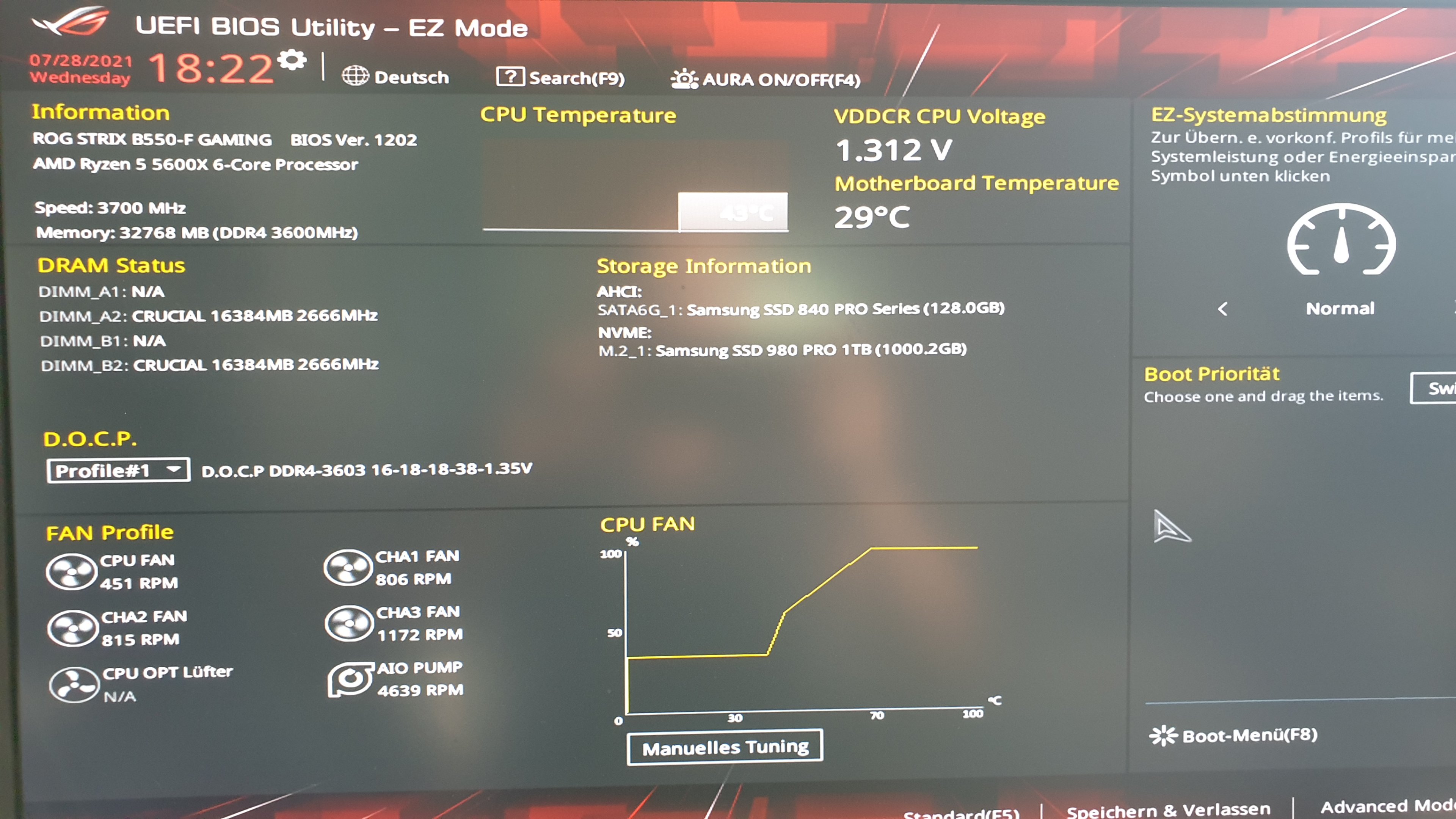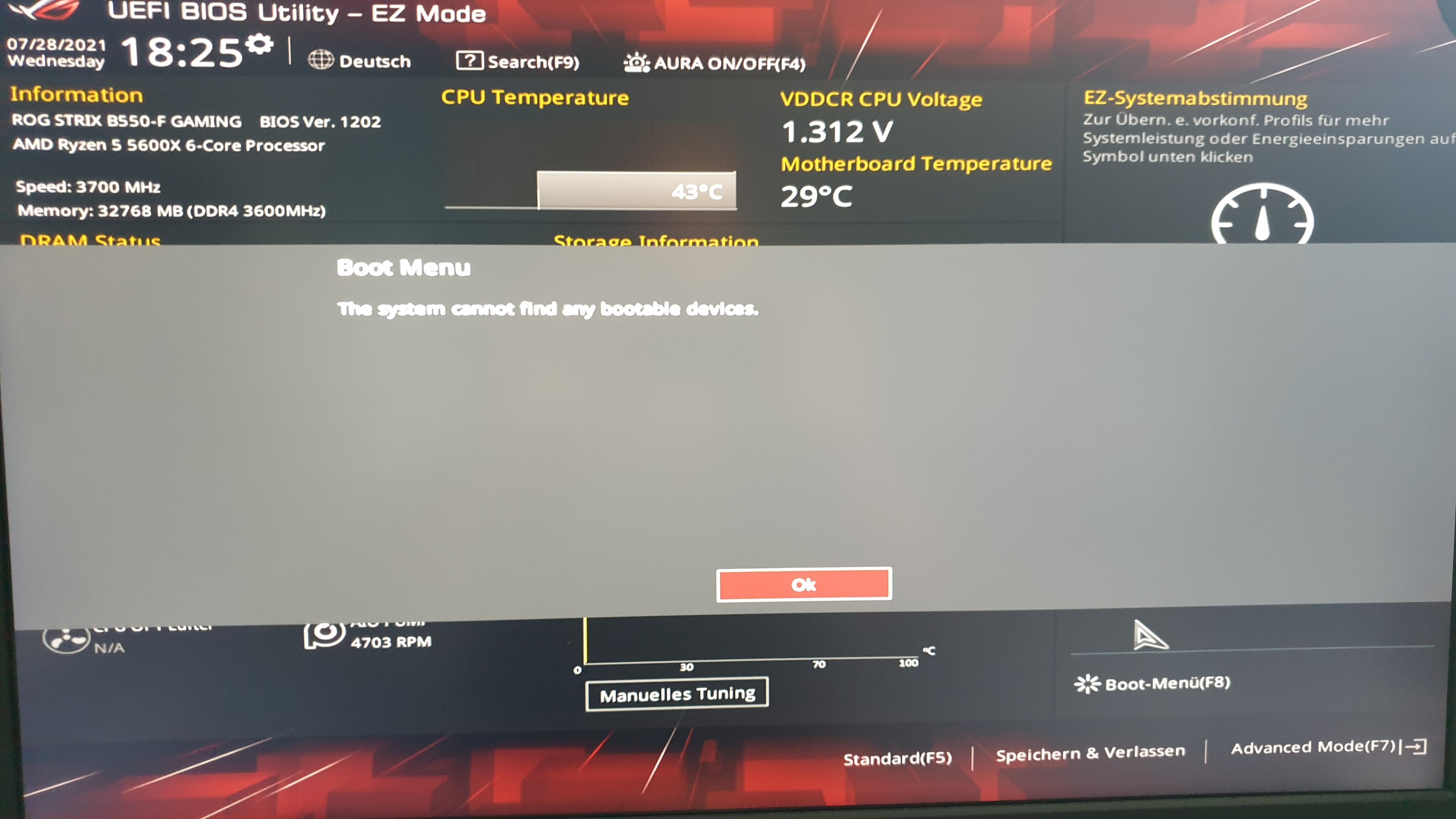 Allerdings wollte ich hier nicht irgendwie Support leisten, wenngleich ich das gerne mache, sondern nur auf deine Spannungen und Ströme hinweisen, die alles andere als idle sind. Solltest du neben XMP auch noch den Proz mit OC versüßt haben, würden mich deine alten Werte nicht wundern. Wenn dem so ist, bitte alles auf Standard setzen, dann sollte das booten kein Problem sein.