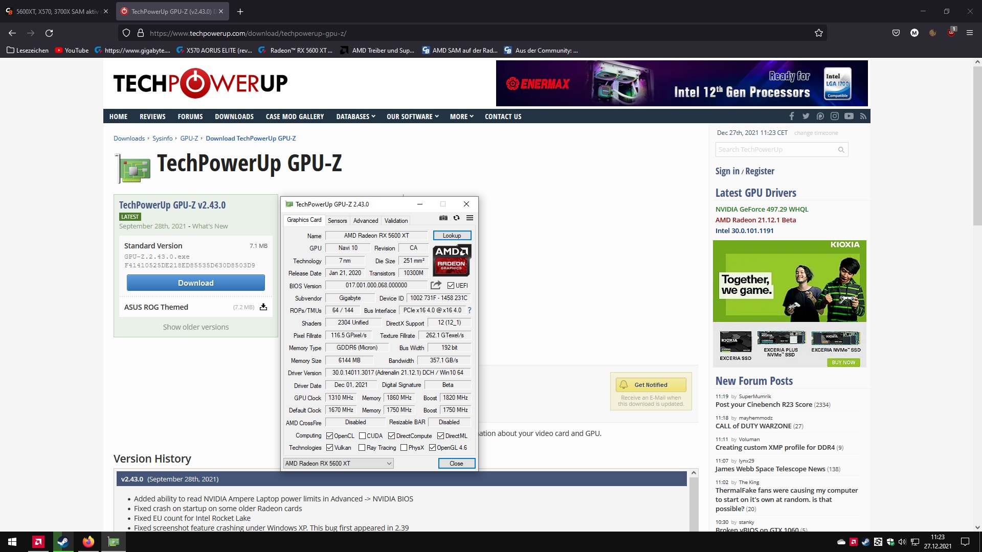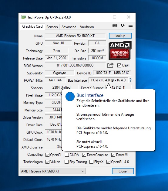 Gigabyte 5600XT Gaming OC 6G Rev.1 BIOS F3 (akutellste für die 1. Rev).