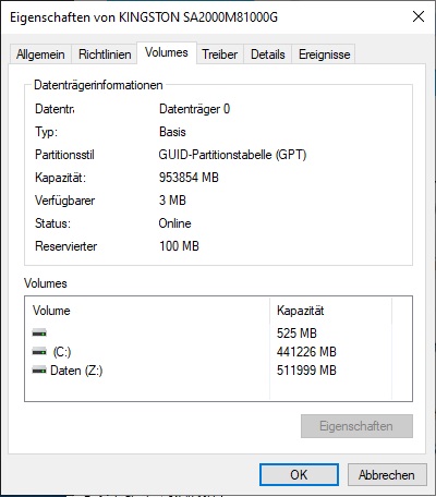 Im Gerätemanager ist auch kein großer Speicherbereich zu sehen.
