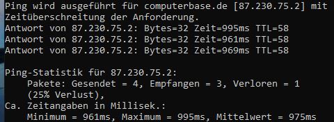 Pinge ich CBase nun mit "ping computerbase.de -t" an, kann ich die Seite über den Browser aufrufen.