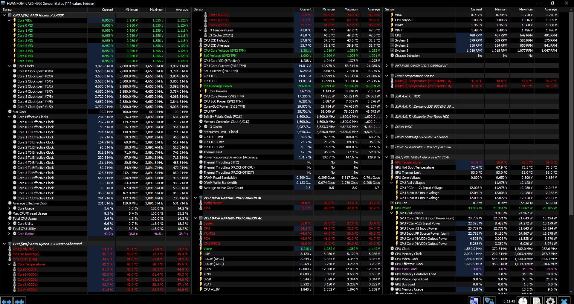 Habe testweise eine AMD 5700x bekommen. Als ich CB-R23 laufen gelassen habe, ist mir aufgefallen, dass die Temp bei 65° liegt und bei Spielen Teil weiße auf 75° steigt. Das hat mich schon sehr gewundert. Ist es normal, dass bei Spielen die CPU nicht auf die 4.65 GHz Boostet? Es gibt ja einmal den Core Effective Clocks und den Core Clock. Ich schaue auf den Core Effective Clocks.