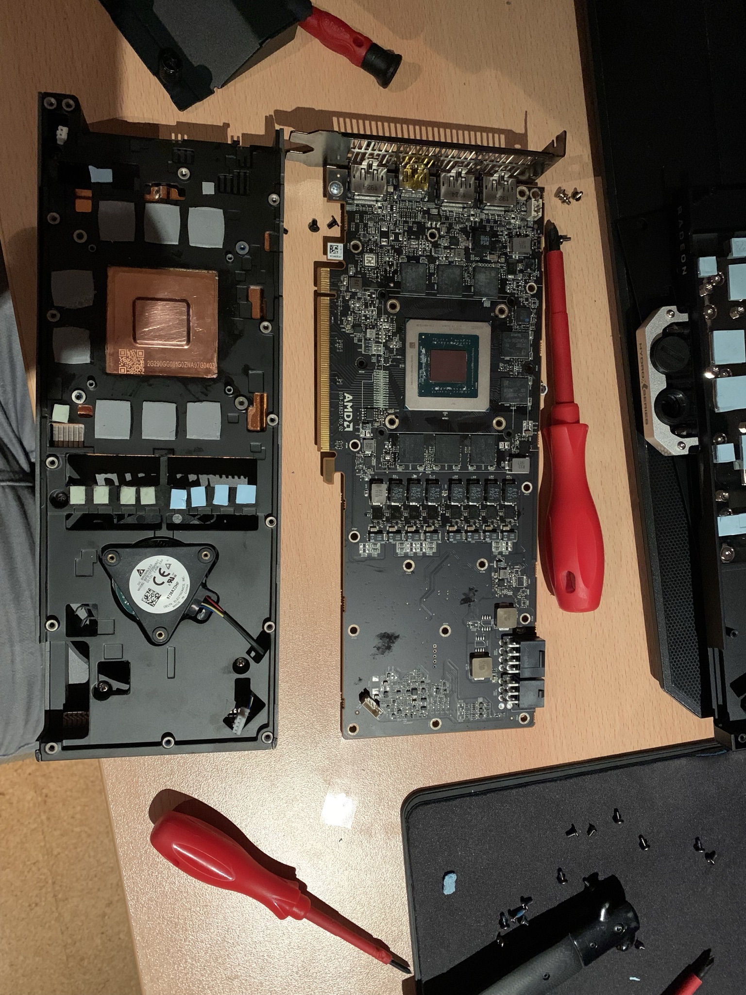 Also, die Karte ist unter last permanent ins Temp limit gerannt, hab daraufhin die Alte Wärmeleitpaste bzw. das Pad so ähnlich bauschaummäßig vom Kühler runtergekratzt und Wärmeleitpaste drauf.