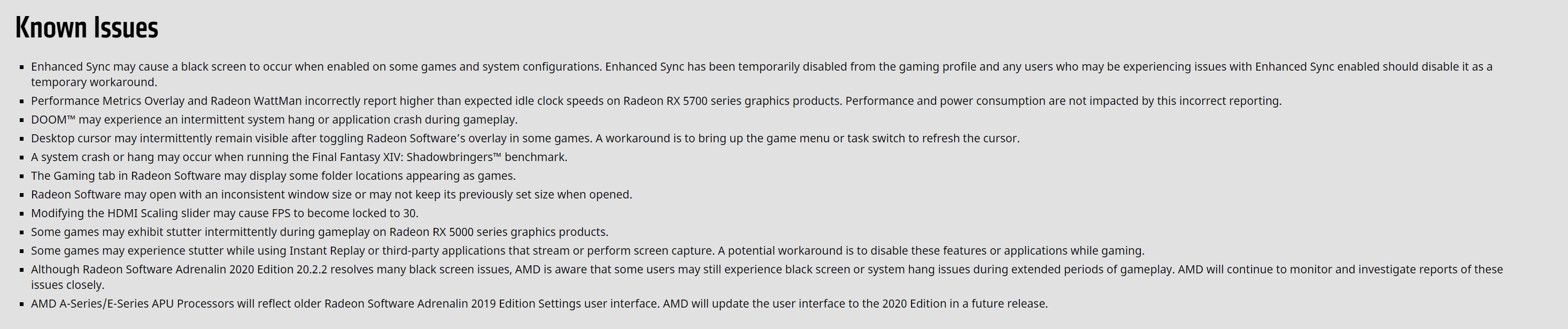 * Some users may still experience black screen or system hang issues during extended periods of gameplay. AMD