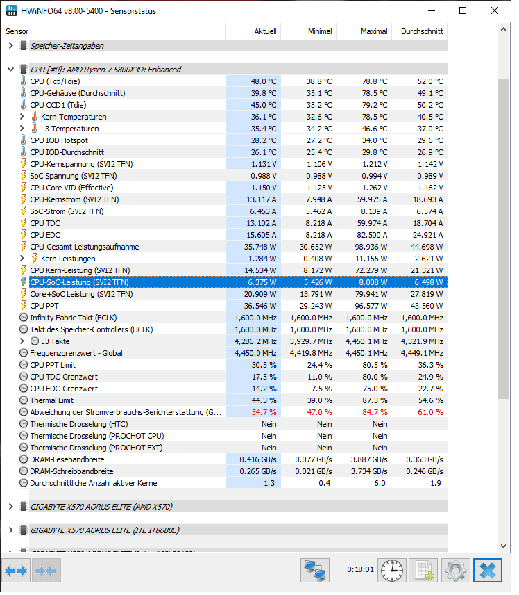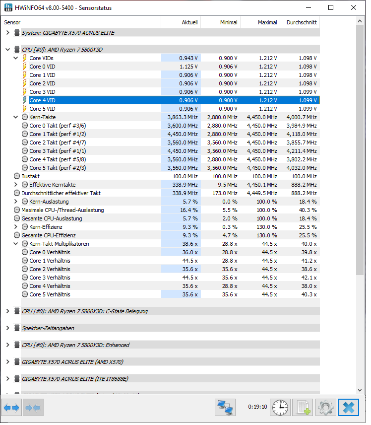 Moin zusammen, ich habe von einer 3900XT auf eine 5800X3D gewechselt. BIOS-Version ist die F39 und CMOS ist auch gelöscht worden. XMP ist aktiv und die Lüfterkurven habe ich auf PWM gestellt. Ansonsten habe ich im BIOS keine weiteren Einstellungen vorgenommen. Mit PBO2 Tuner habe ich alle Kerne auf -30 gestellt.