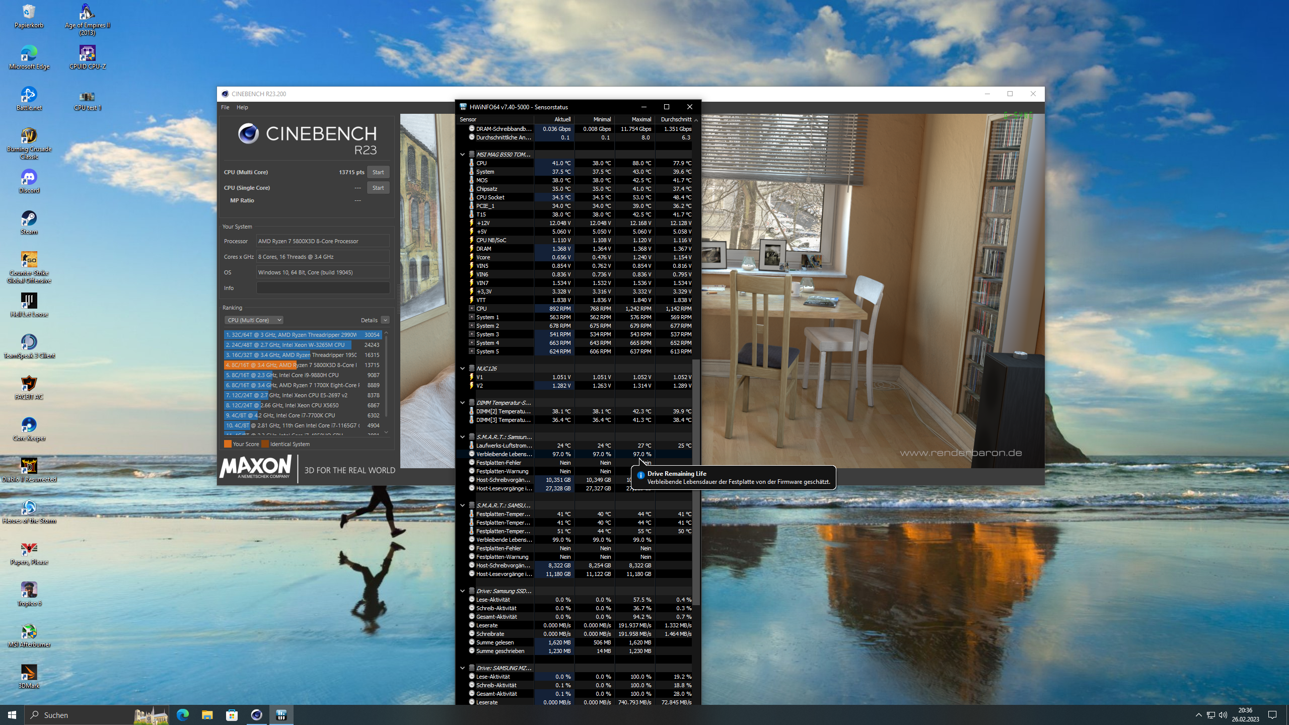 Cinebench R23 Punkte im Multi sollten etwa 14200-14400 "Standard" sein.