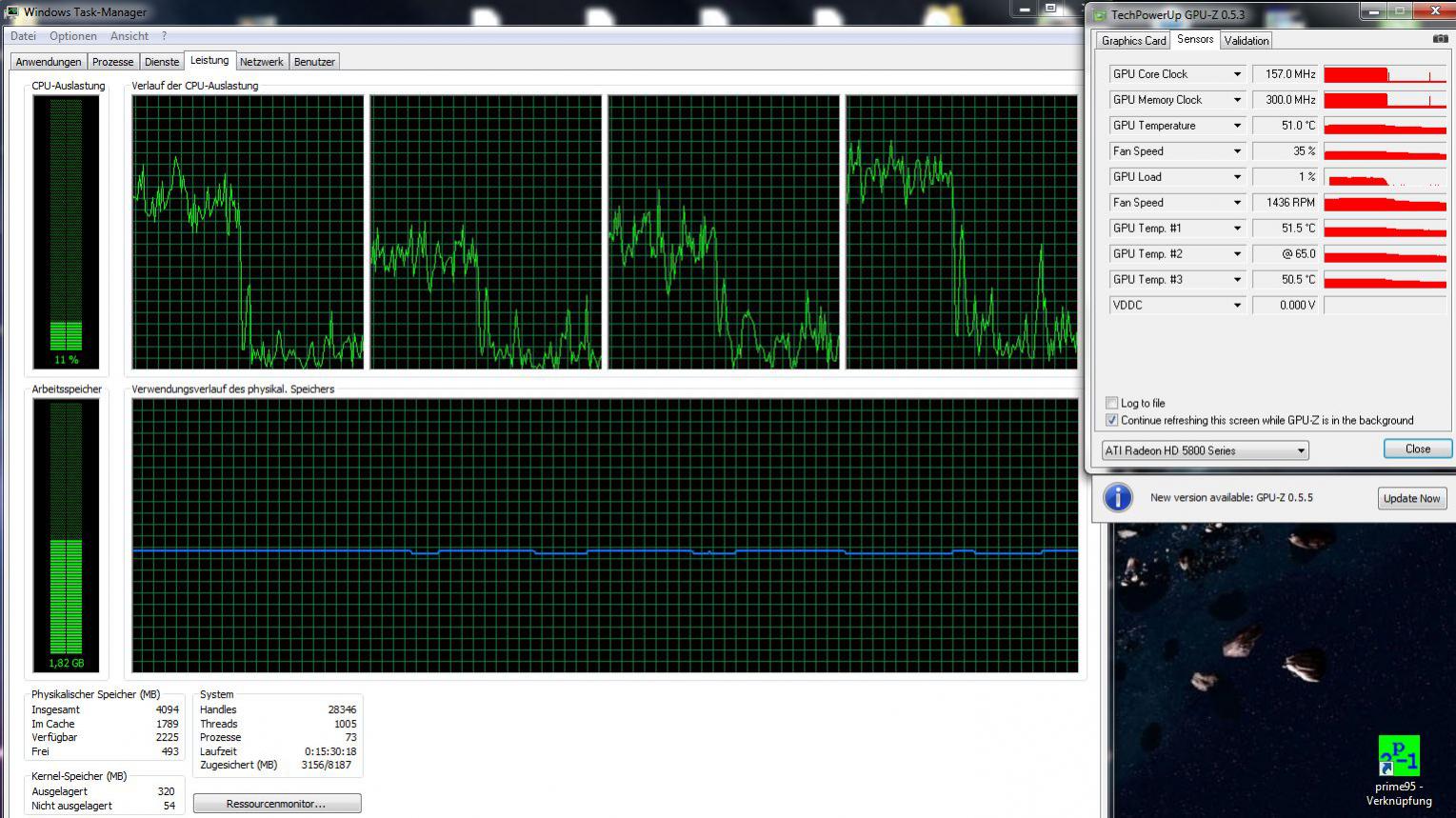 Meine 5850 wird meist nur um die 60% genutzt und mein CPU werkelt auch bei 50-60% rum