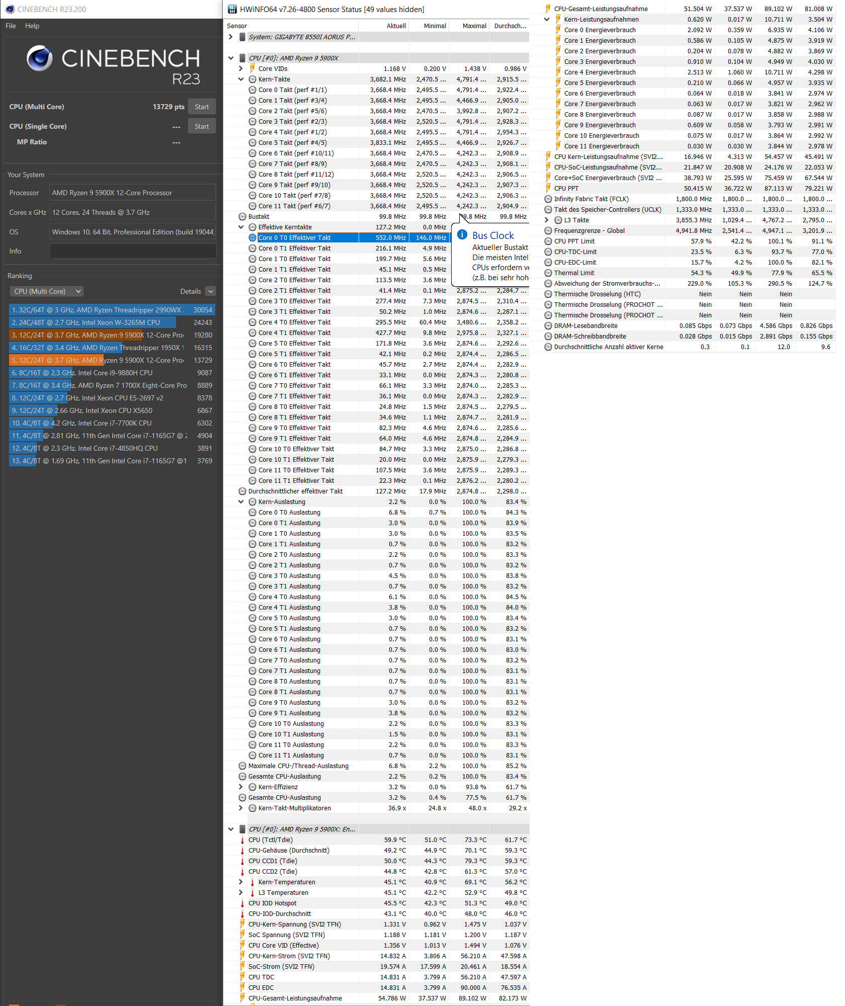 Okay, dann ist der schnelle Stock Run schon niedriger als bei ComputerBase (kurz, 22000), Hardwareluxx (21100, vermutlich auch kurz, erkennbar an gelisteten Intel-Werten) und leicht unterhalb fast aller Community-Werte, die mehrheitlich auch im Bereich 20800-22300 liegen. Das verwundert mich, da die Kühlung stärker ist als im ComputerBase-Test. Vielleicht ist der Chip einfach Montags-Silizium. Da könnte der Curve Optimizer eventuell noch was bringen.