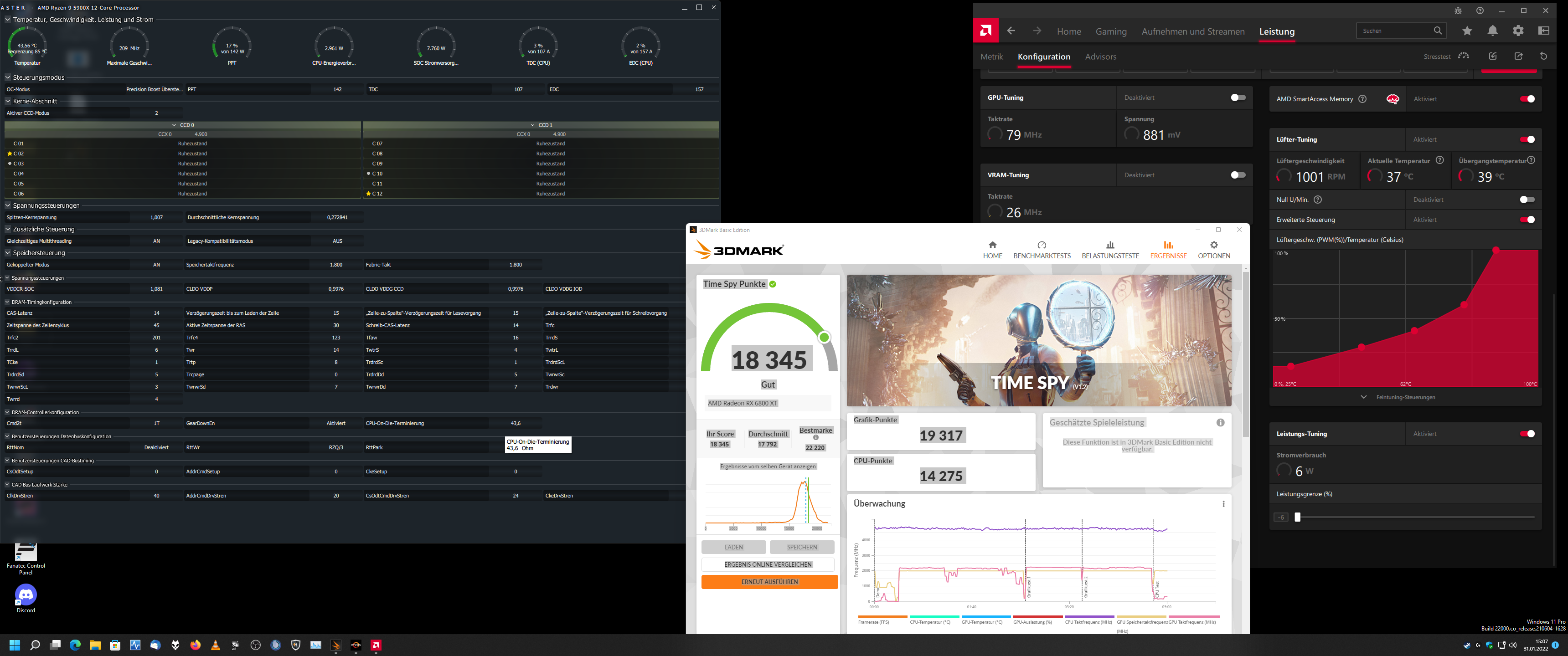 Habe jetzt den RAM mal auf 3600 laufen lassen und folgendes besseres Ergebnis, zumindest was die GPU betrifft. Bei der CPU ist glaube ich noch deutlich Luft nach oben.