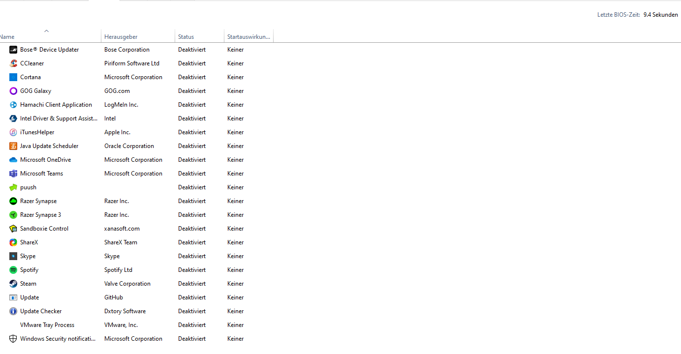 Gleiches mit dem Taskmanager, dort der Reiter Prozesse (alle Hintergrundprozesse, nicht nur die handvoll Apps ganz oben).