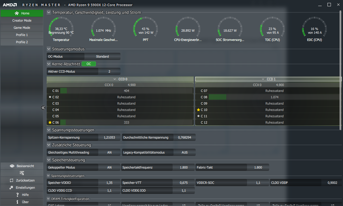 Im BIOS passts soweit, der CPPC ist dafür zuständig dass deine Kerne sich schlafen legen und der ist aktiv.