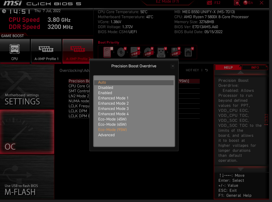 Muss ich denn noch andere Einstellungen vornehmen oder habe ich irgendwas anderes nicht beachtet? Ich würde gerne das "Eco"-Settings nachbilden, das in den CB-Tests hier mit glaub 88W angegeben wird/wurde und dem 5950X da eine richtig gute Effizienz brachte verglichen mit den Default-Settings.