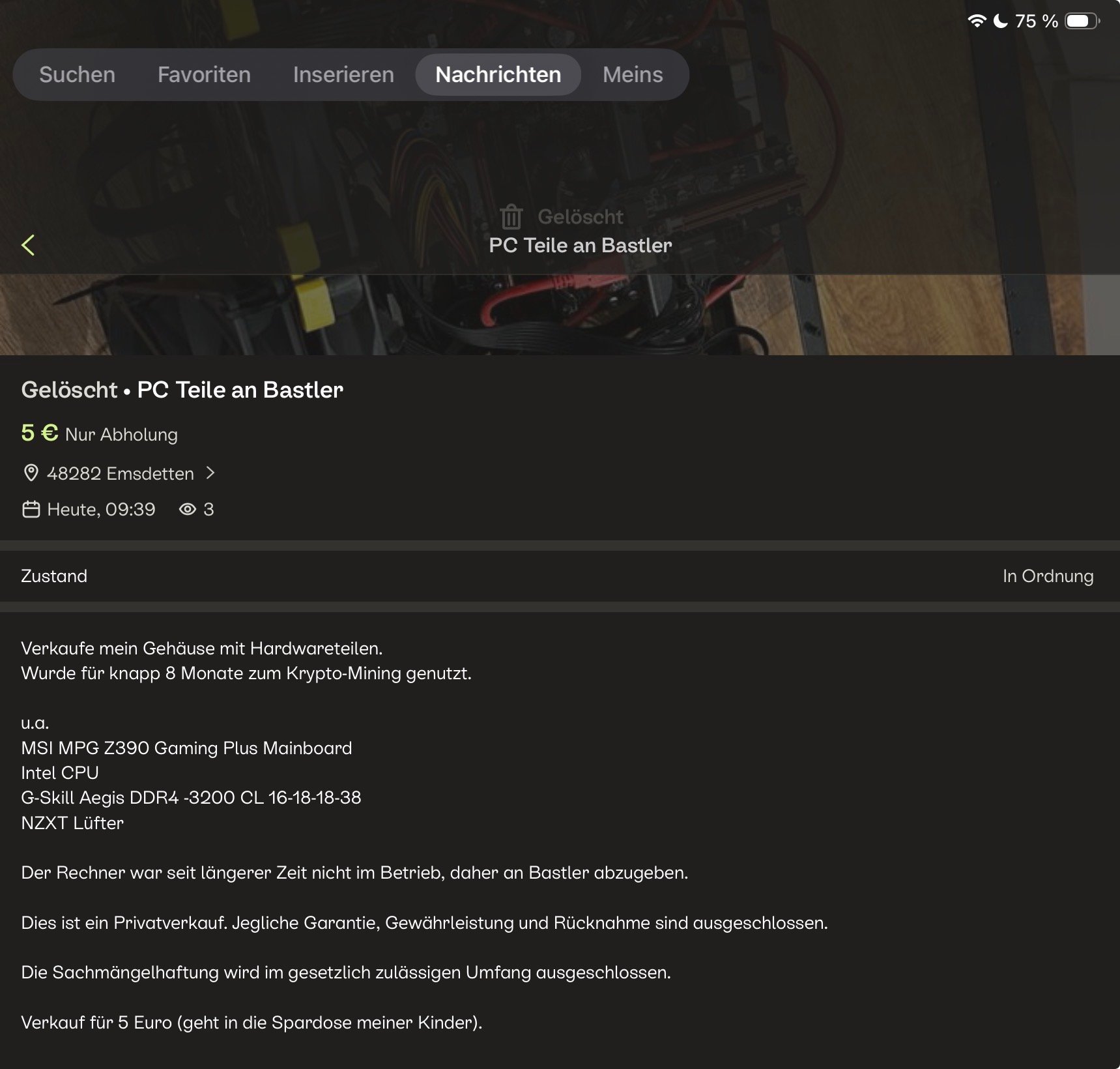5€ Krypto-Mining Setup auf Kleinanzeigen