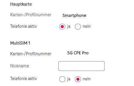 Dazu nutze ich zwei SIM-Karten von der Telekom auf einer Rufnummer (MultSIM). Sobald der Router aktiv ist, ist unter meiner Rufnummer dauerhaft besetzt, ich kann also keine Telefonate mehr annehmen.