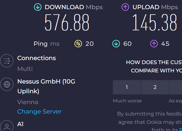 PS: "schneller" als A1 wie unten zu sehen, funktioniert aber Drei ohnehin nicht hier an meinem Standort.. egal ob mit oder ohne SA bzw n75, und nein, auch die Latenz/Pingzeiten werden wenn überhaupt nur minimal besser dadurch...