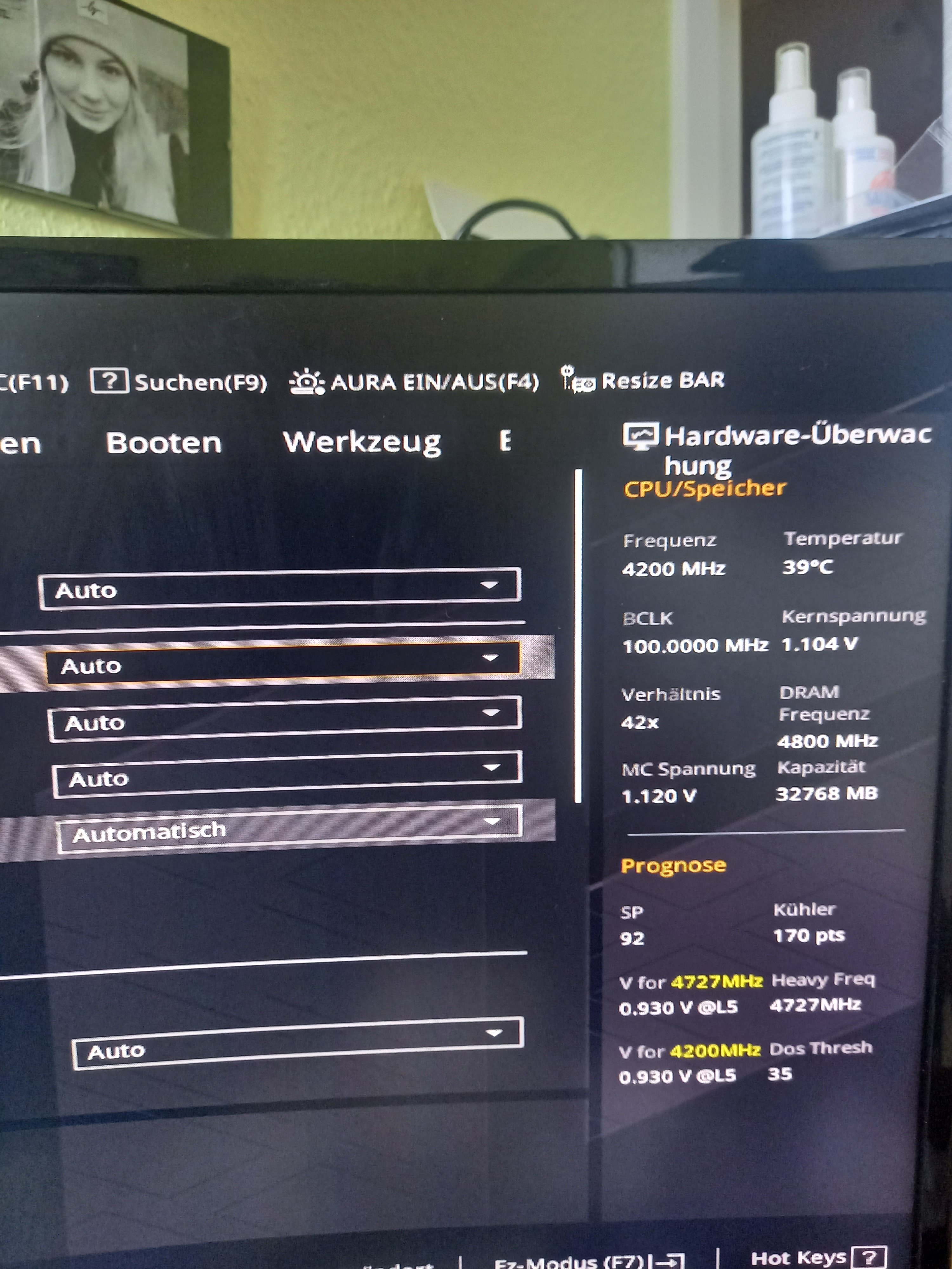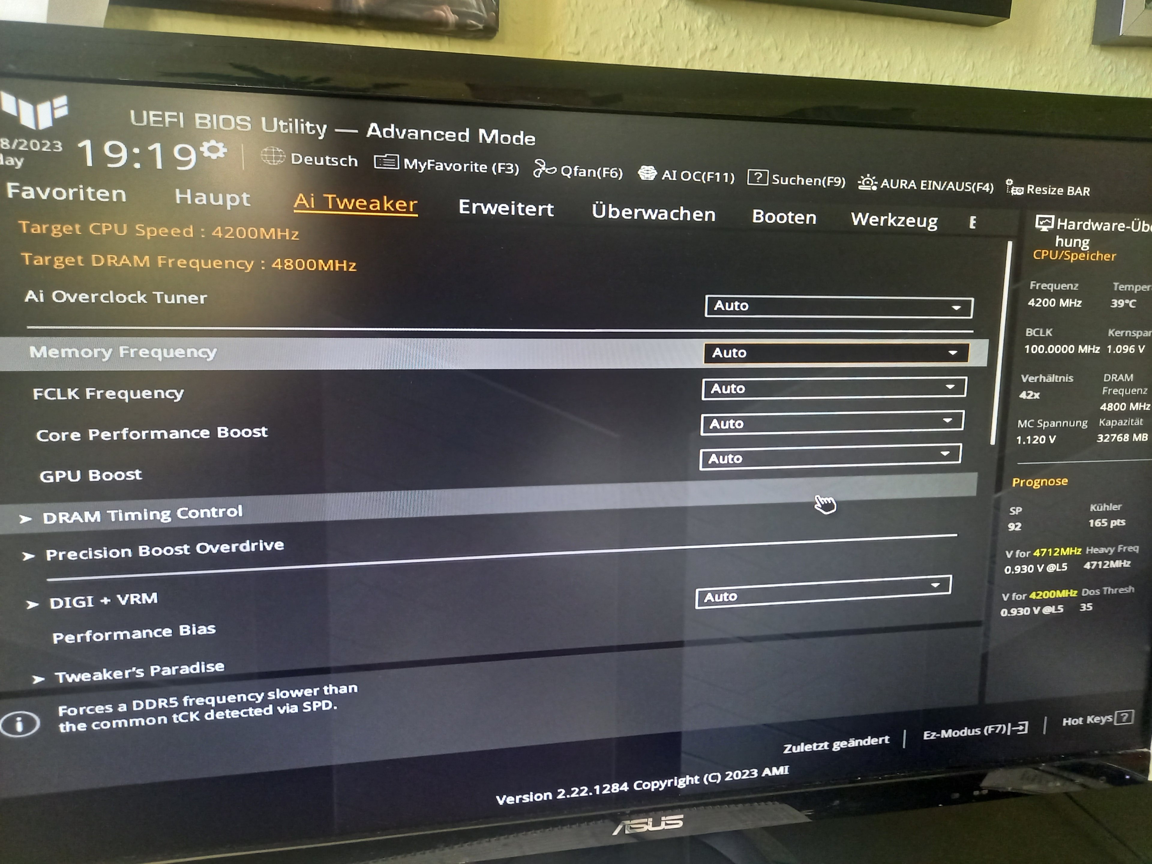 Laut BIOS laufen sie auf AUTO (hab im BIOS NICHTS verändert, mit Ausnahme des FastBoot, welches ich deaktiviert habe) bei 4800 MHz.