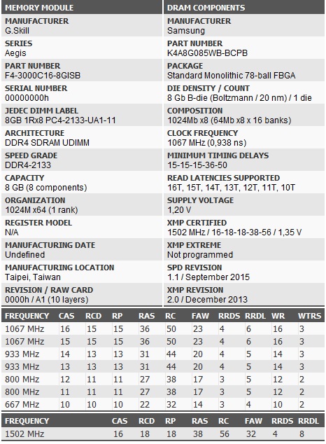 Lies die Riegel mal mit Thaiphoon Burner aus bitte. Samsung als Dram Manufacturer ist interessant, in der Regel würde da Hynix stehen.