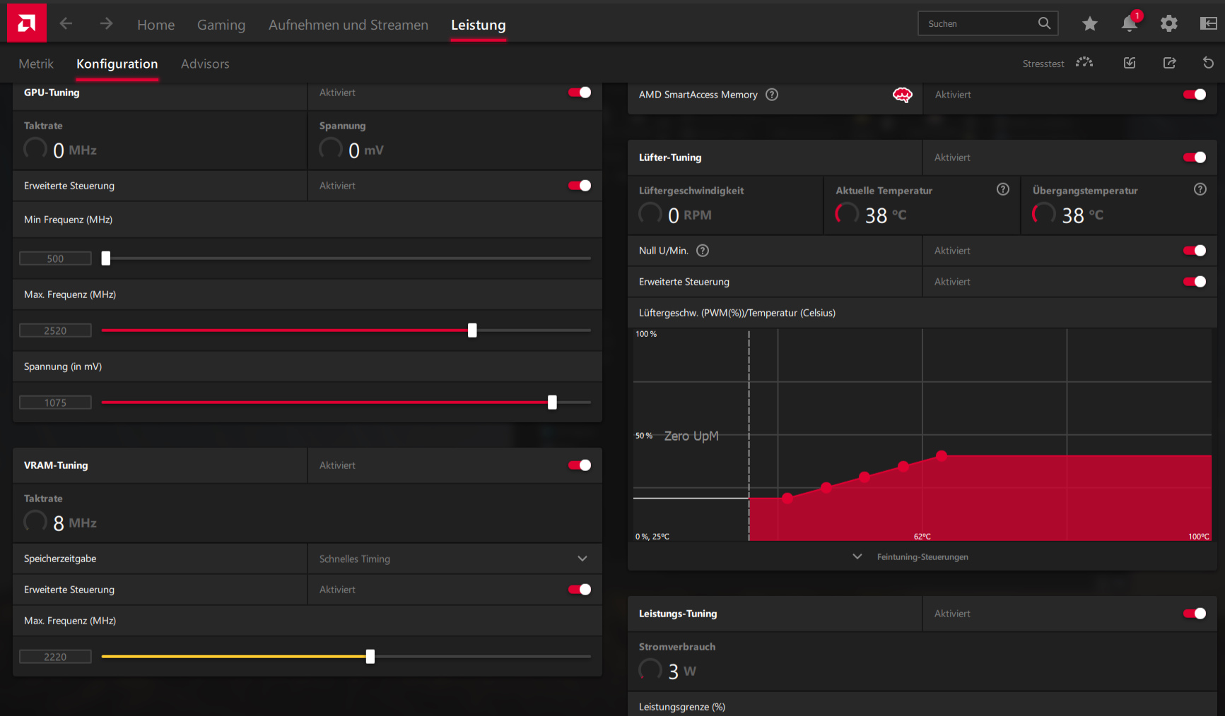 Die Lüfterkurve war genauso wie die Konfiguration der Spannungen nur durch modifizierte SoftPowerPlayTables per MPT möglich.