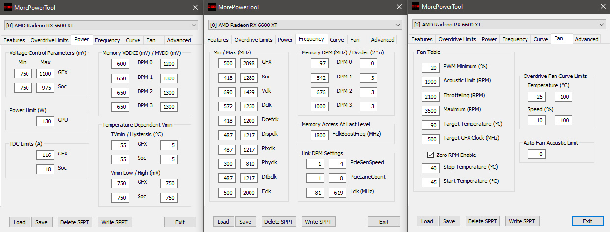 Aufgrund des nur 32MB kleinen Infinity Cache der 6600XT und dem schmalen 128 bit Interface stellt die Speicheranbindung den größten Flaschenhals für die Karte dar. Hier ist also auch der größte Leistungszuwachs durch manuelle Optimierung zu erwarten.
