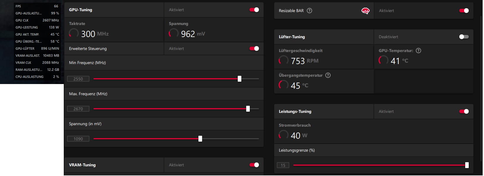 Also: Ich vermisse irgendwie Performance, weil die Grafikkarte nicht höher taktet?!