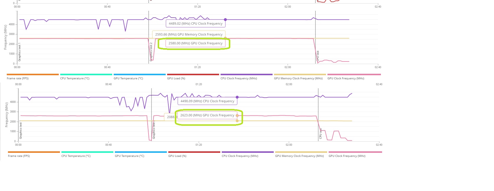 Extra für das Spiel ein modifiziertes Spielprofil hinterlegt bei dem ich bis zu ~2750 Mhz takten lasse. - Das wird auch ignoriert und das Spiel endet bei ca. 2615 Mhz.